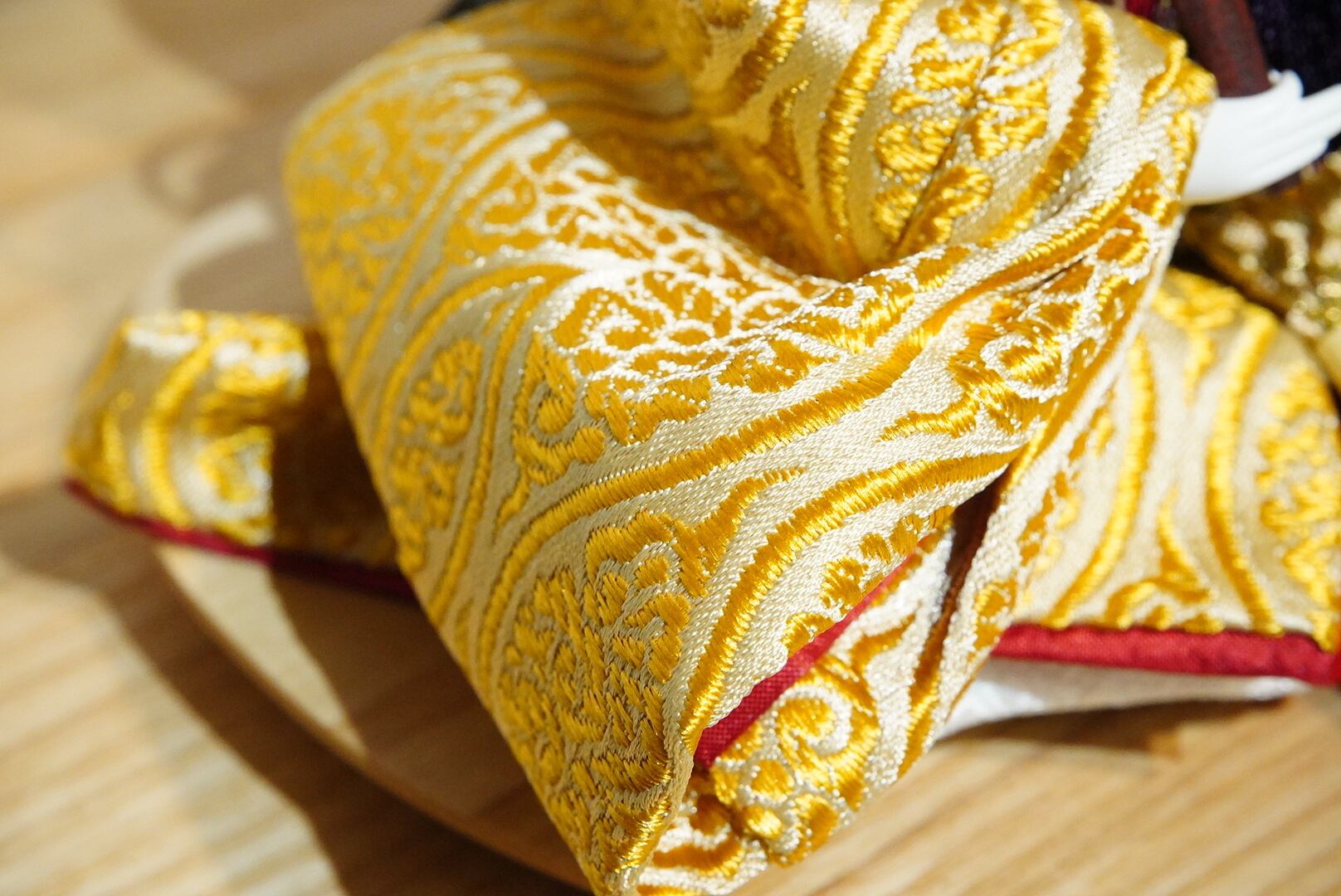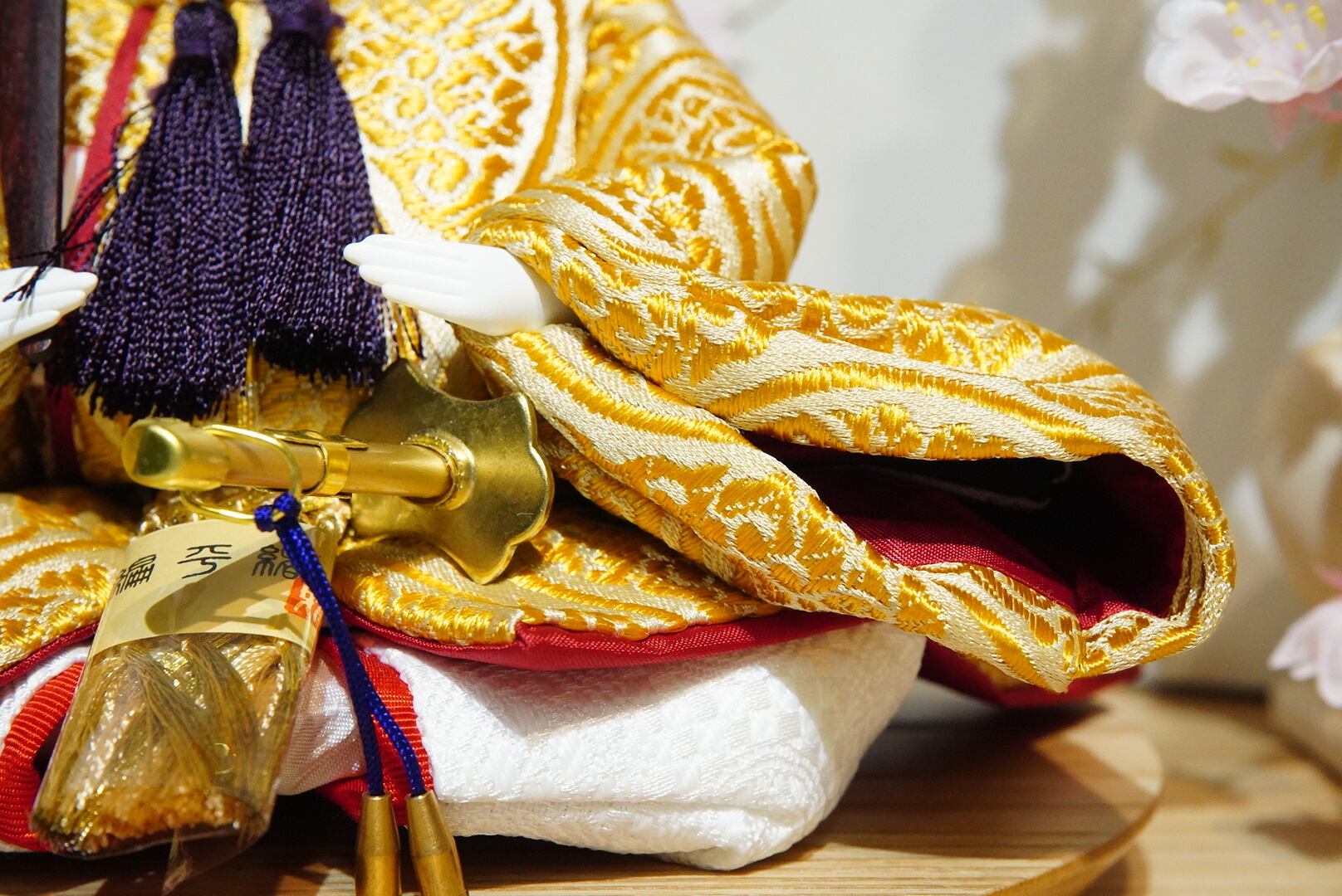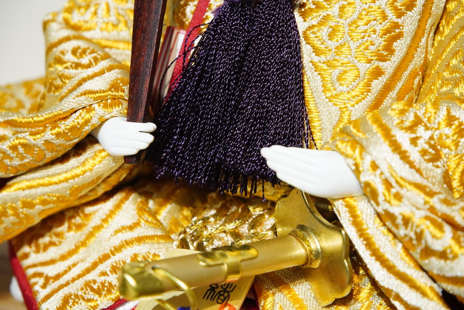 お内裏様は深みのある金茶の衣を纏い、堂々とした姿で格式の高さを感じさせます。