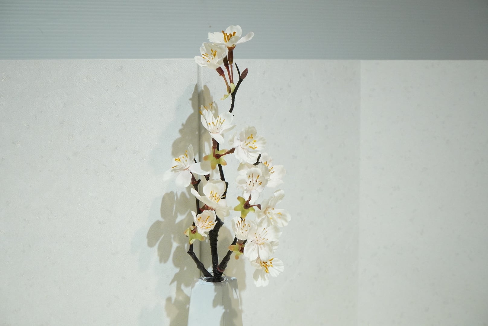 中央に飾られた白梅が、春の訪れを告げるように優美なアクセントとなっています。