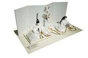 白を基調とした上品な色調で統一され、洗練された空間にやさしく溶け込む現代的な雛飾りです。