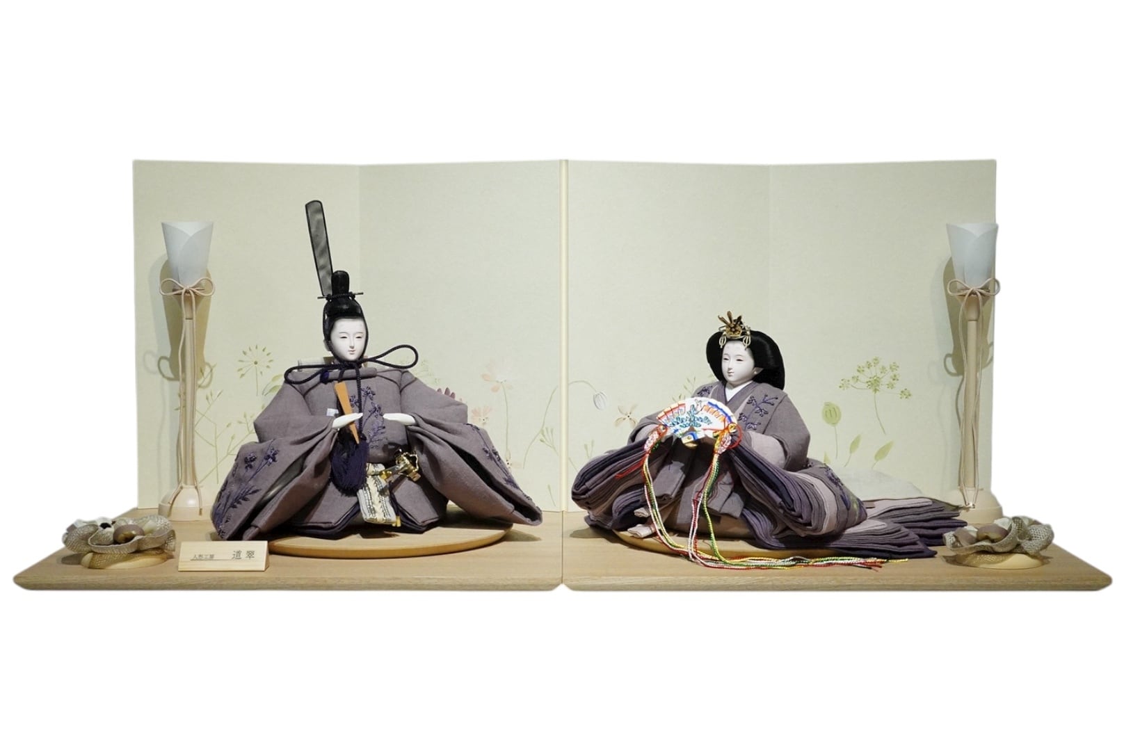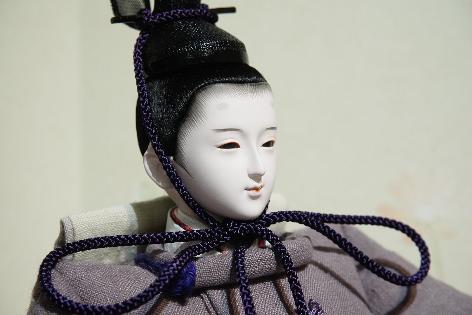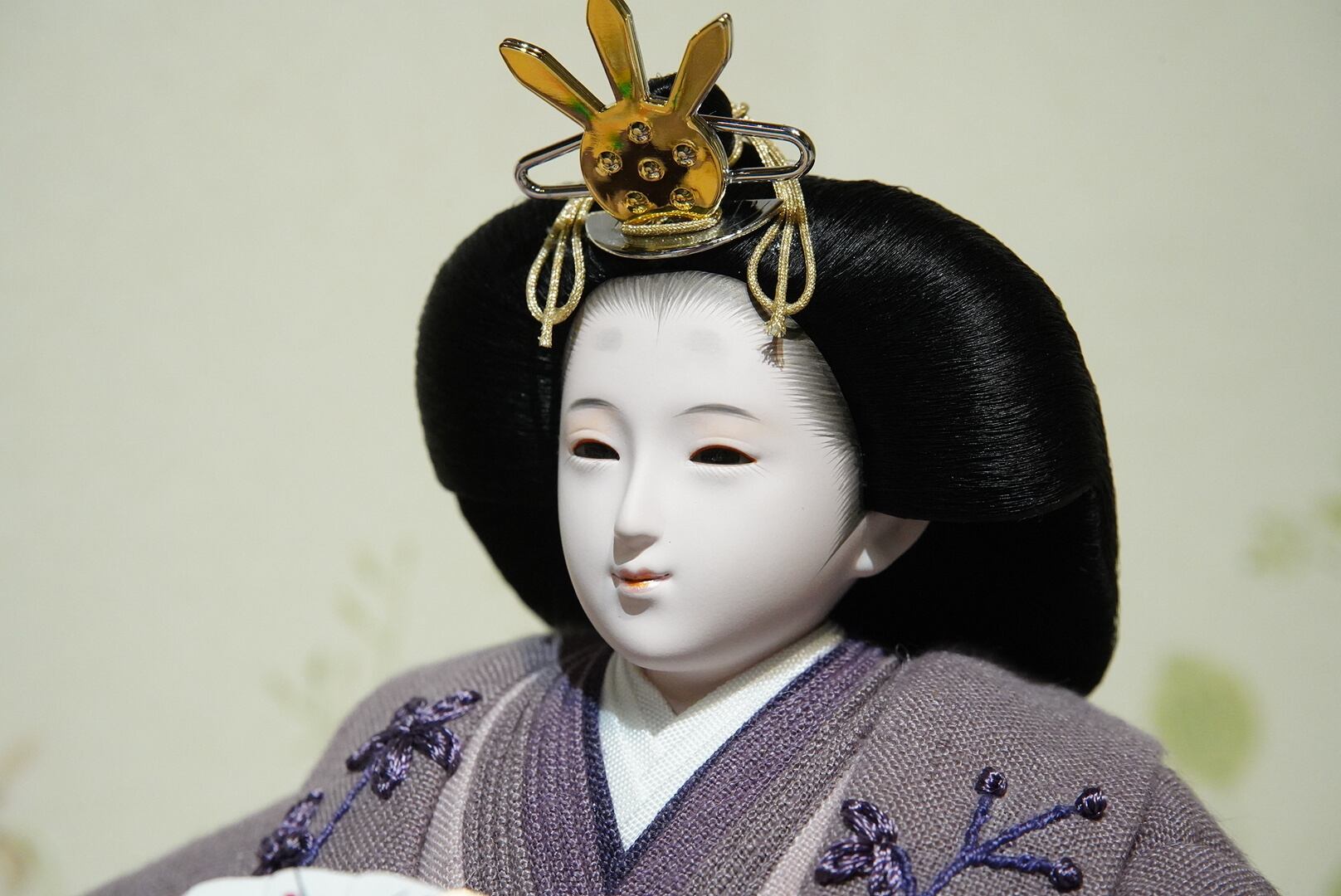 静かな気品をたたえた、上品な紫の衣裳が印象的な親王飾り。