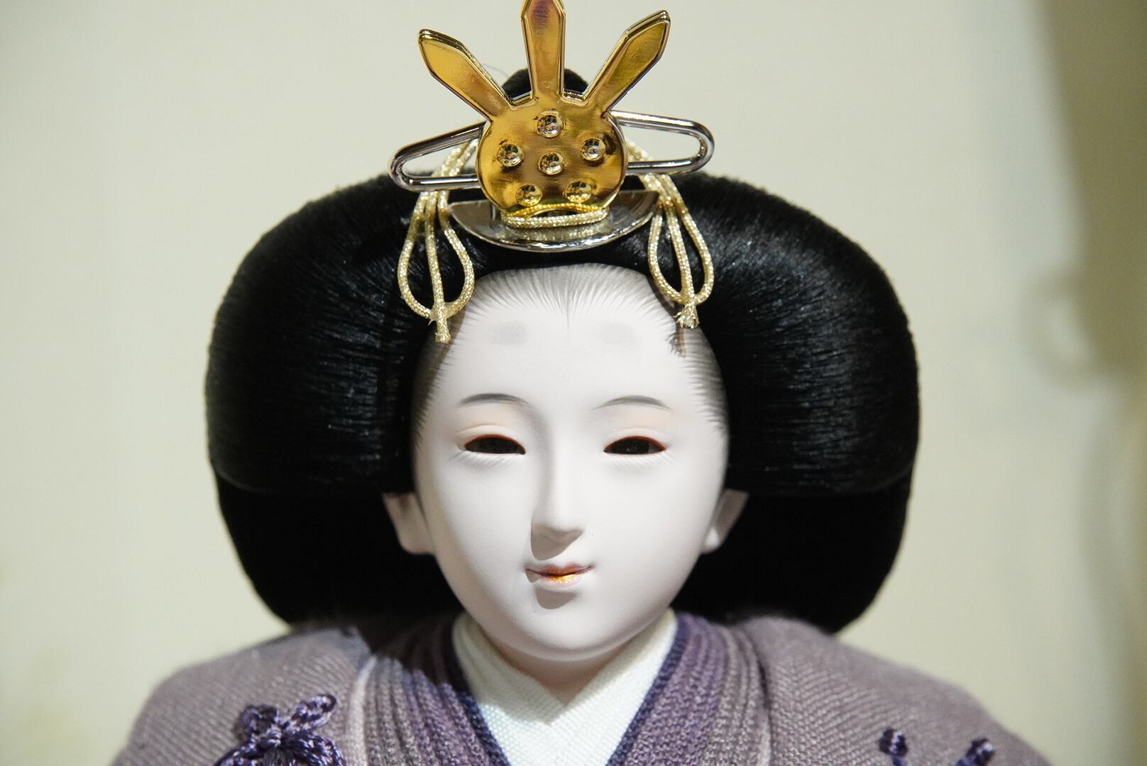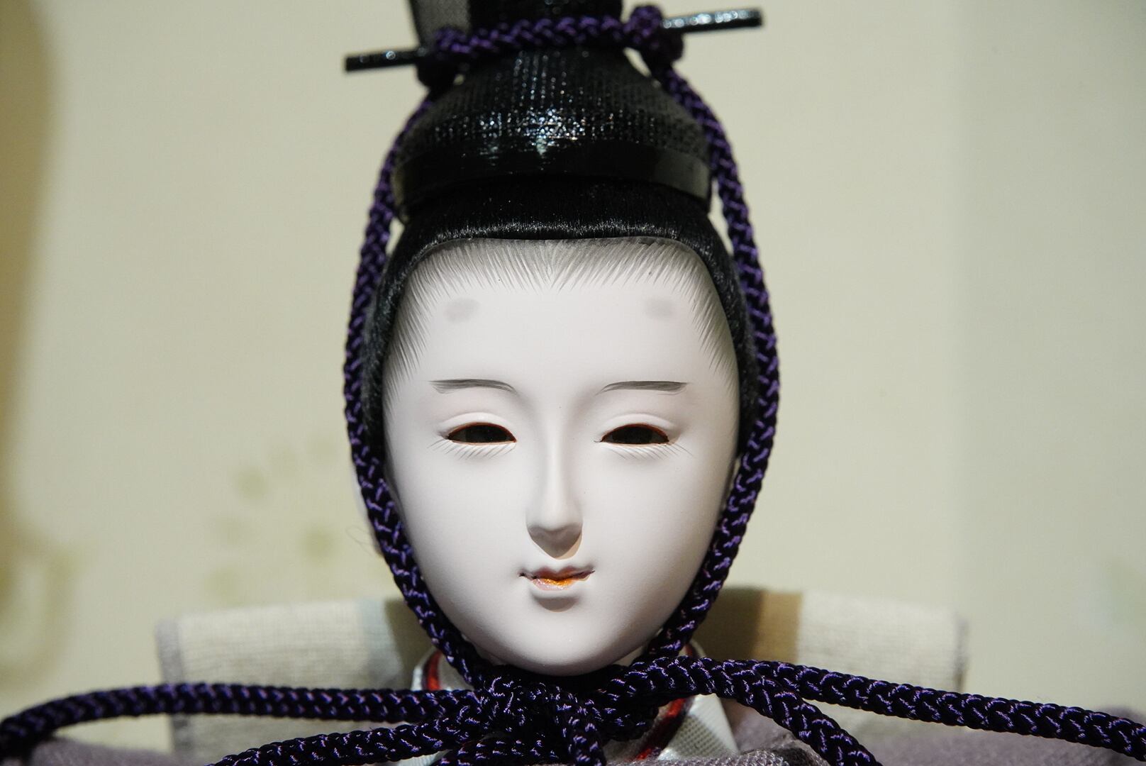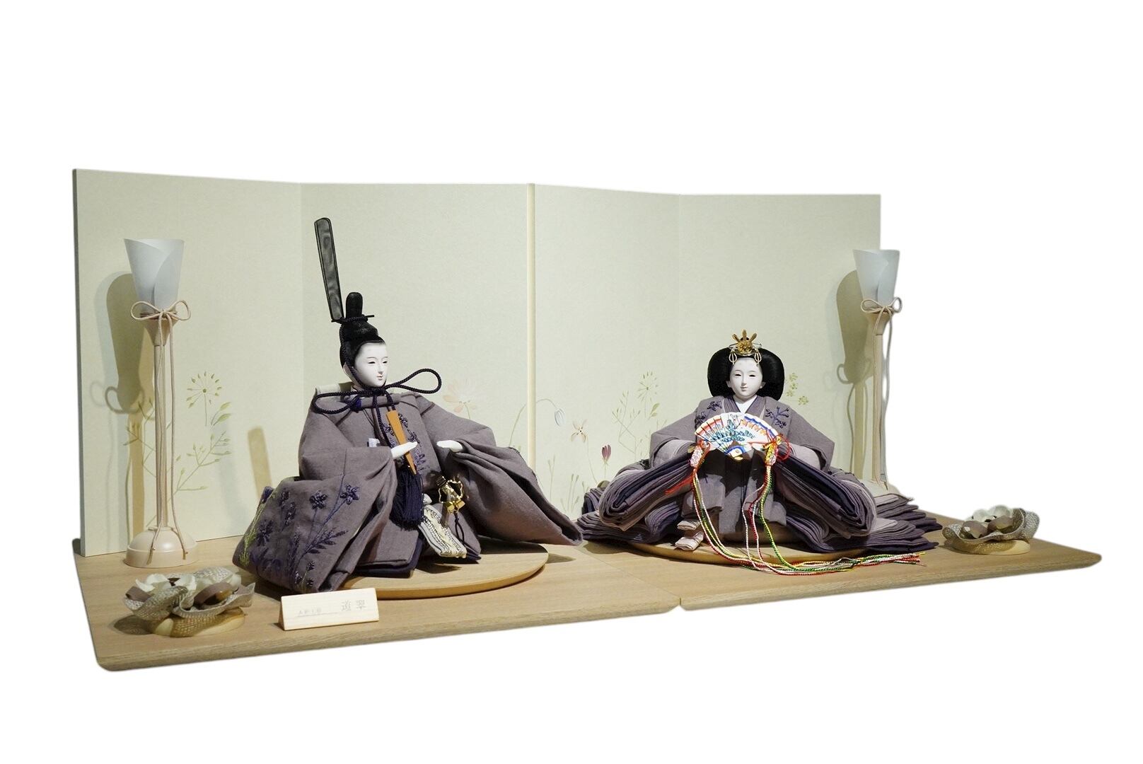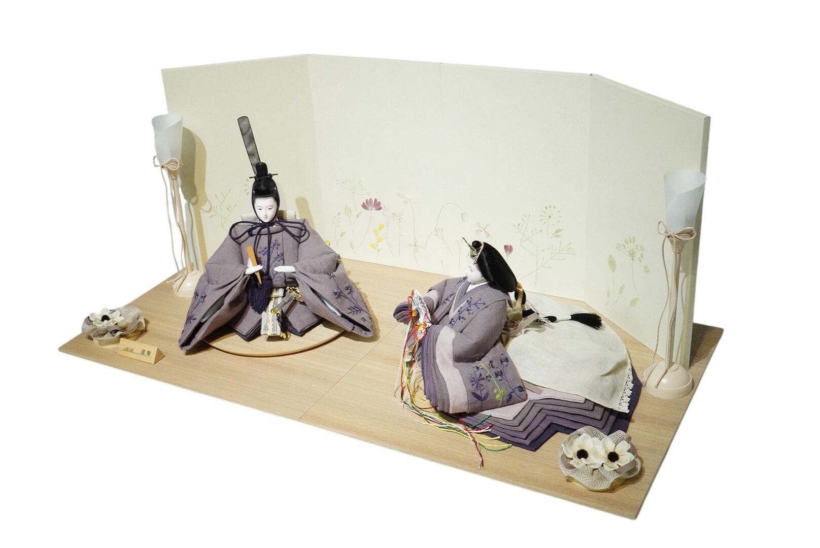静かな気品をたたえた、上品な紫の衣裳が印象的な親王飾り。