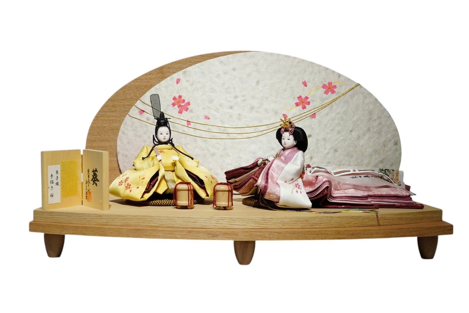 桜をあしらった丸みのある屏風が、春のやさしい風情を感じさせる上品なデザインです。