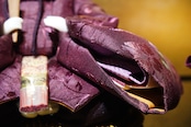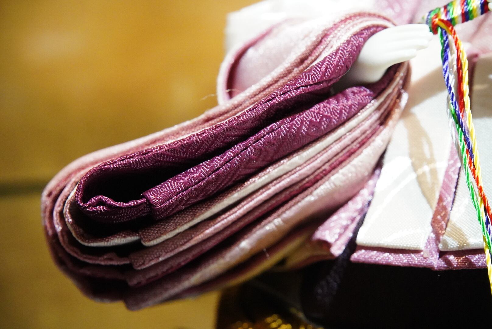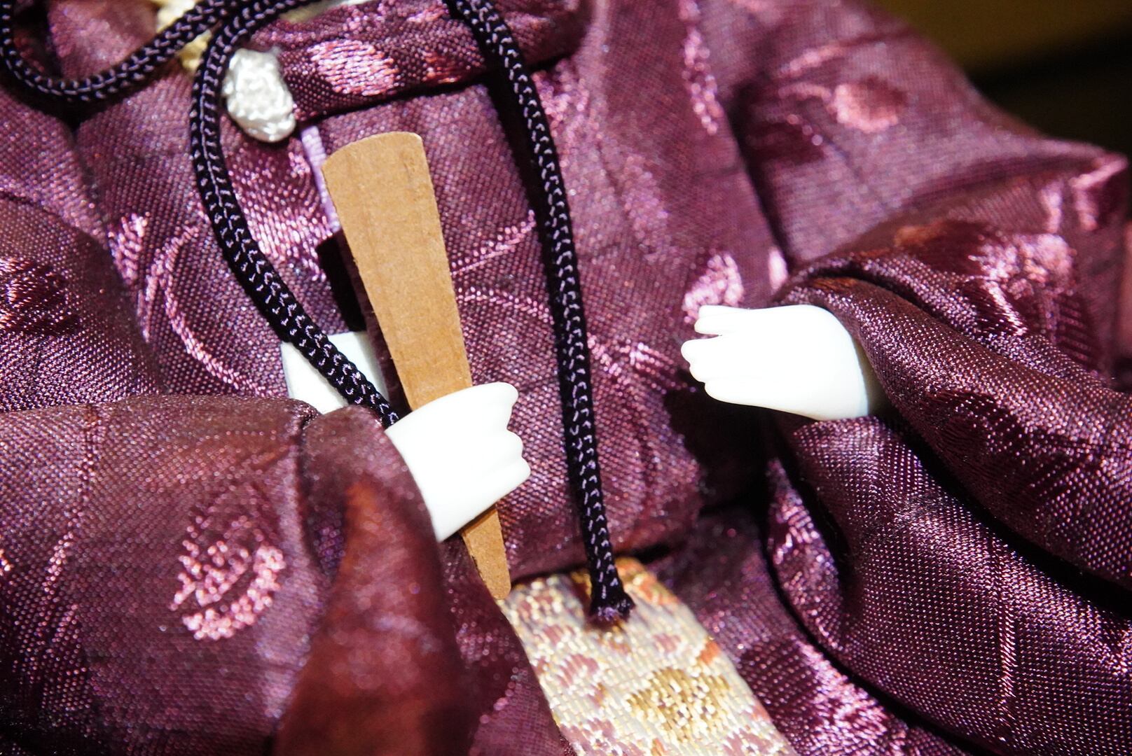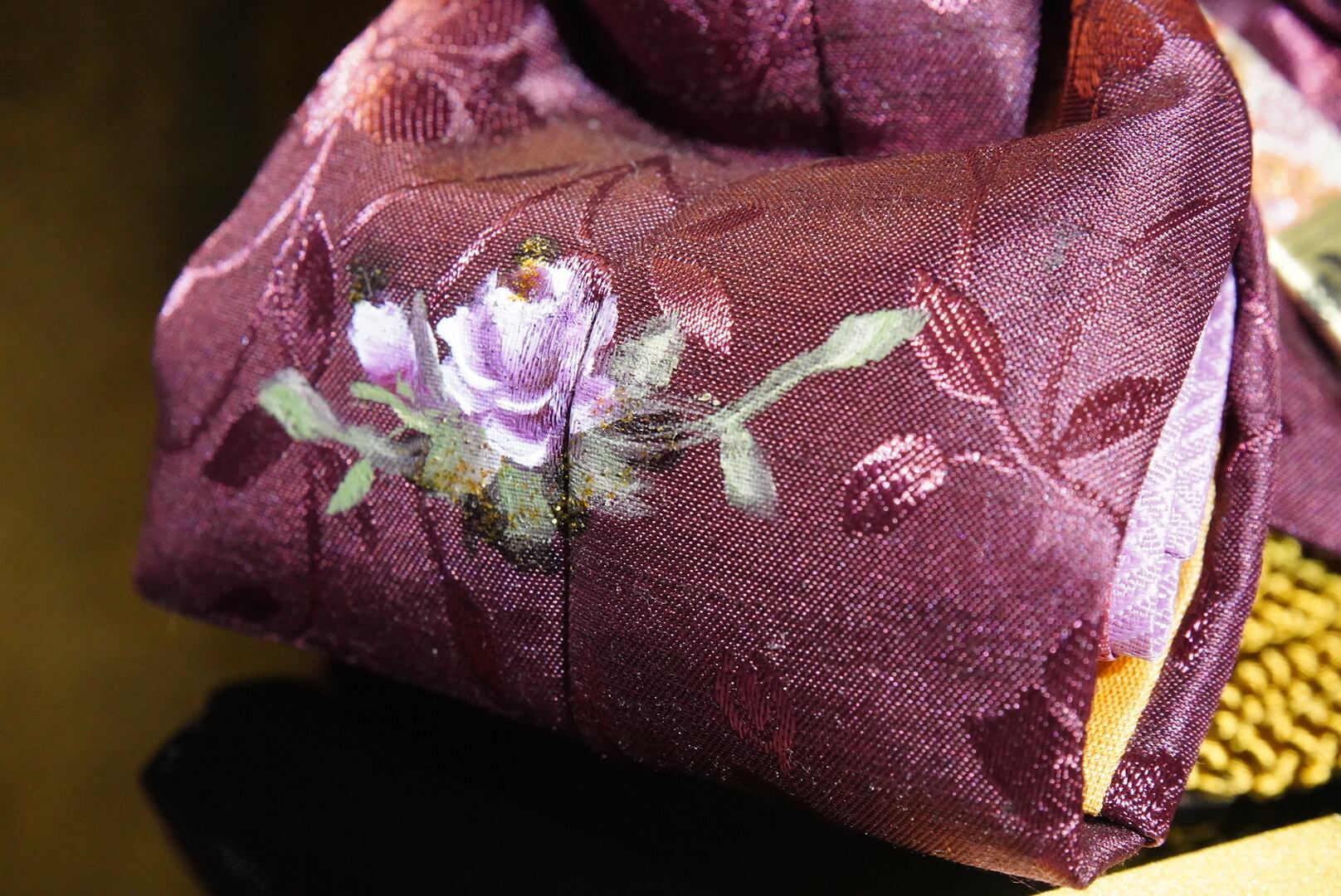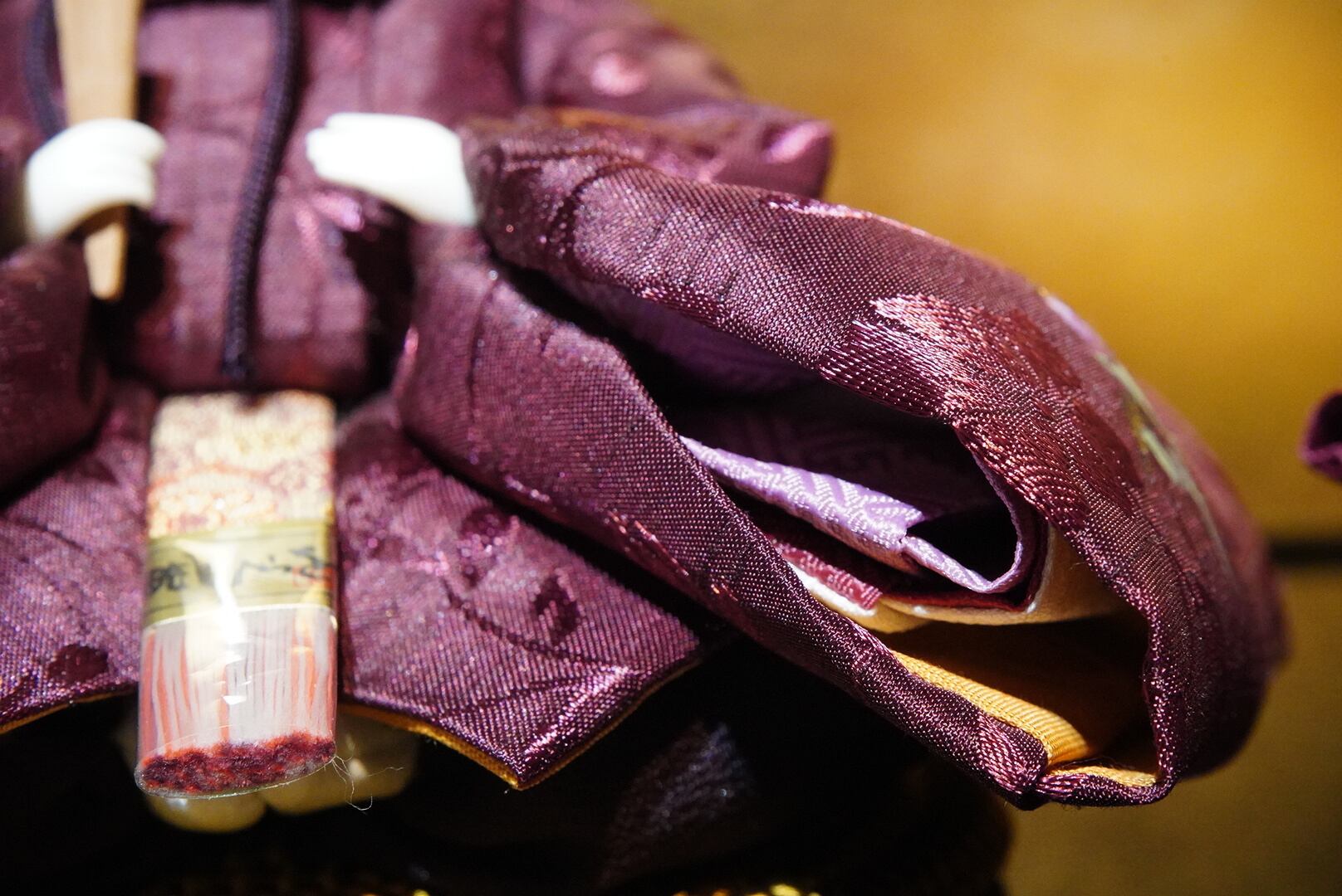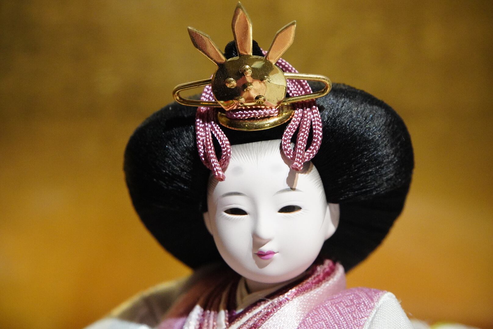 お内裏様には深みのある紫、そしてお雛様には淡い桃色と白を重ねた優美な衣裳を。