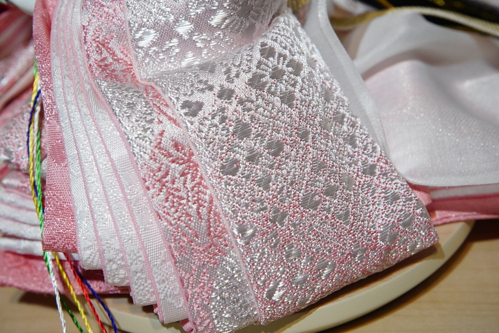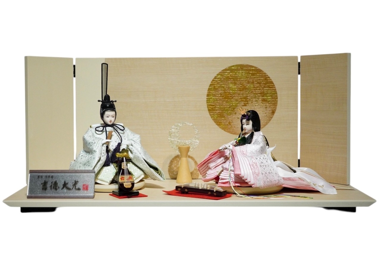 お雛様は白と桜色を基調にした衣裳で、春の訪れを思わせる華やぎと優美さを表現しています。