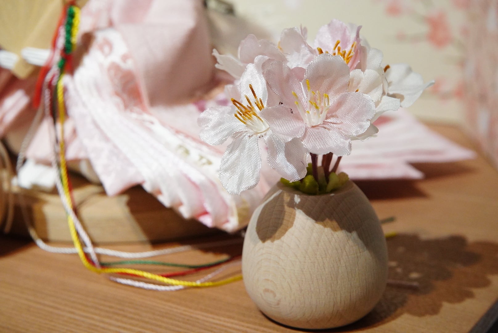 柔らかな灯りとともに、春の訪れを感じさせる気品ある親王飾り。