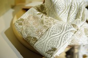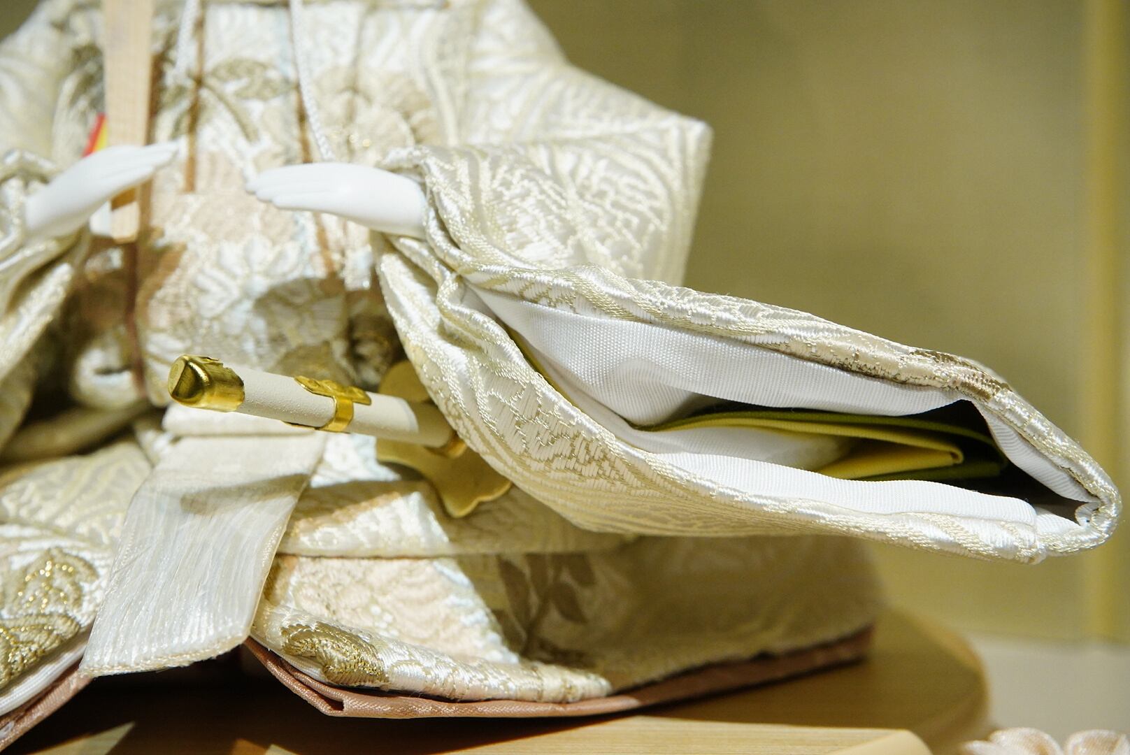 背景には金色に輝く屏風が広がり、上品で落ち着いた雰囲気の中に格調高さが漂います。