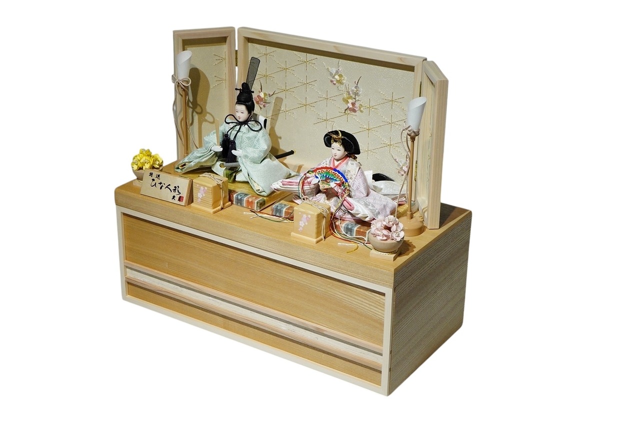 また、下の台は収納箱を兼ねており、ひな祭りの後にはお人形やお道具を中に仕舞うことができます。