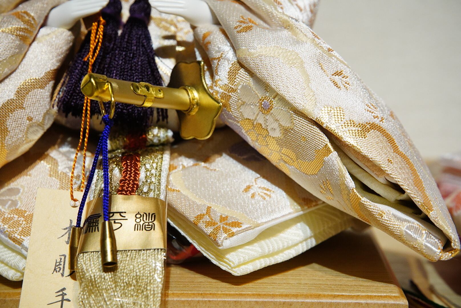 さらに、下の台は収納箱としてもお使いいただける仕様になっており、お人形やお道具をすべて中に仕舞うことができます。飾る時も、片付ける時も美しく整う、実用性と美しさを兼ね備えた一式です。