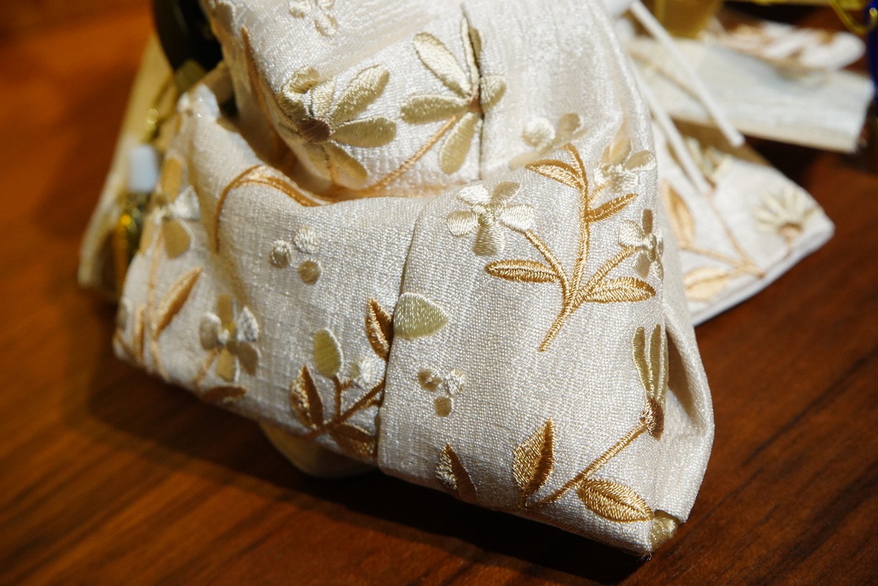 華やかさがありながらも主張しすぎず、お人形の気品を美しく引き立てています。