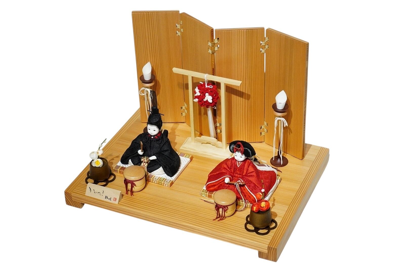 豊かな木目が美しい天竜杉を使用した屏風と台が、自然のやさしさとぬくもりを感じさせる上質なひな飾りです。木の香りと滑らかな質感が、お部屋を穏やかで落ち着いた雰囲気に包み込みます。