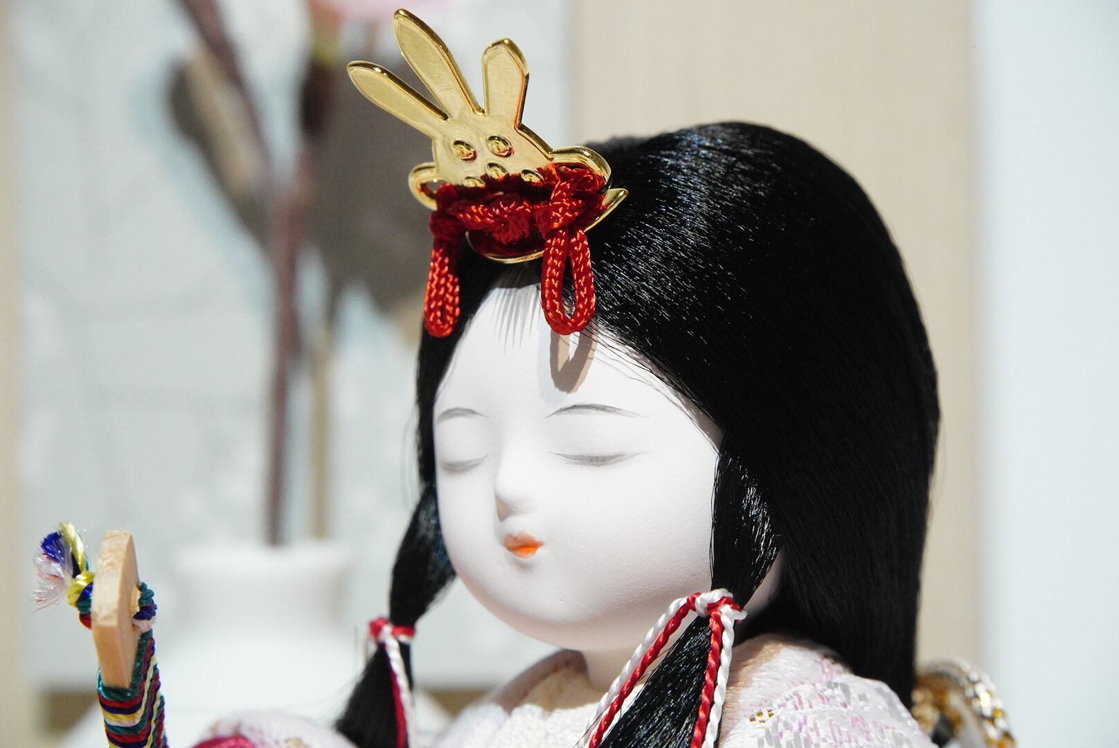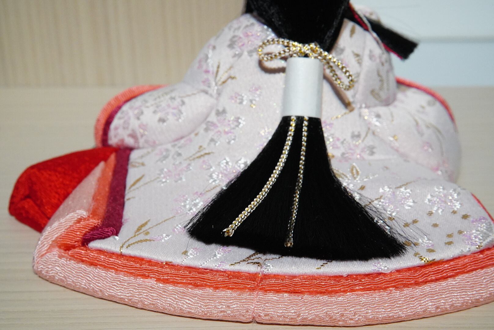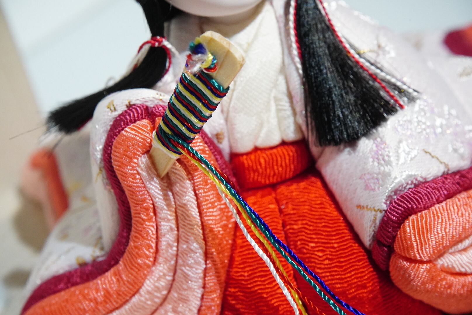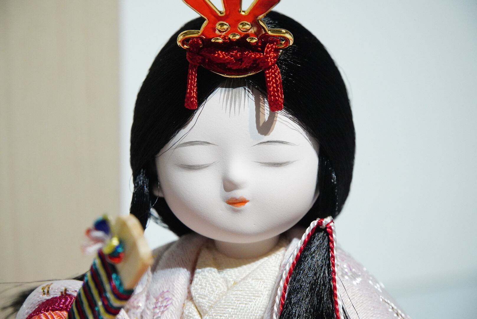 お内裏様は白銀の衣に薄紫の差し色を添えて凛とした佇まいを見せ、お雛様は紅を基調とした華やかな重ねで優雅さを演出。控えめながらも存在感のあるデザインが、現代の住空間にも自然に調和します。