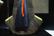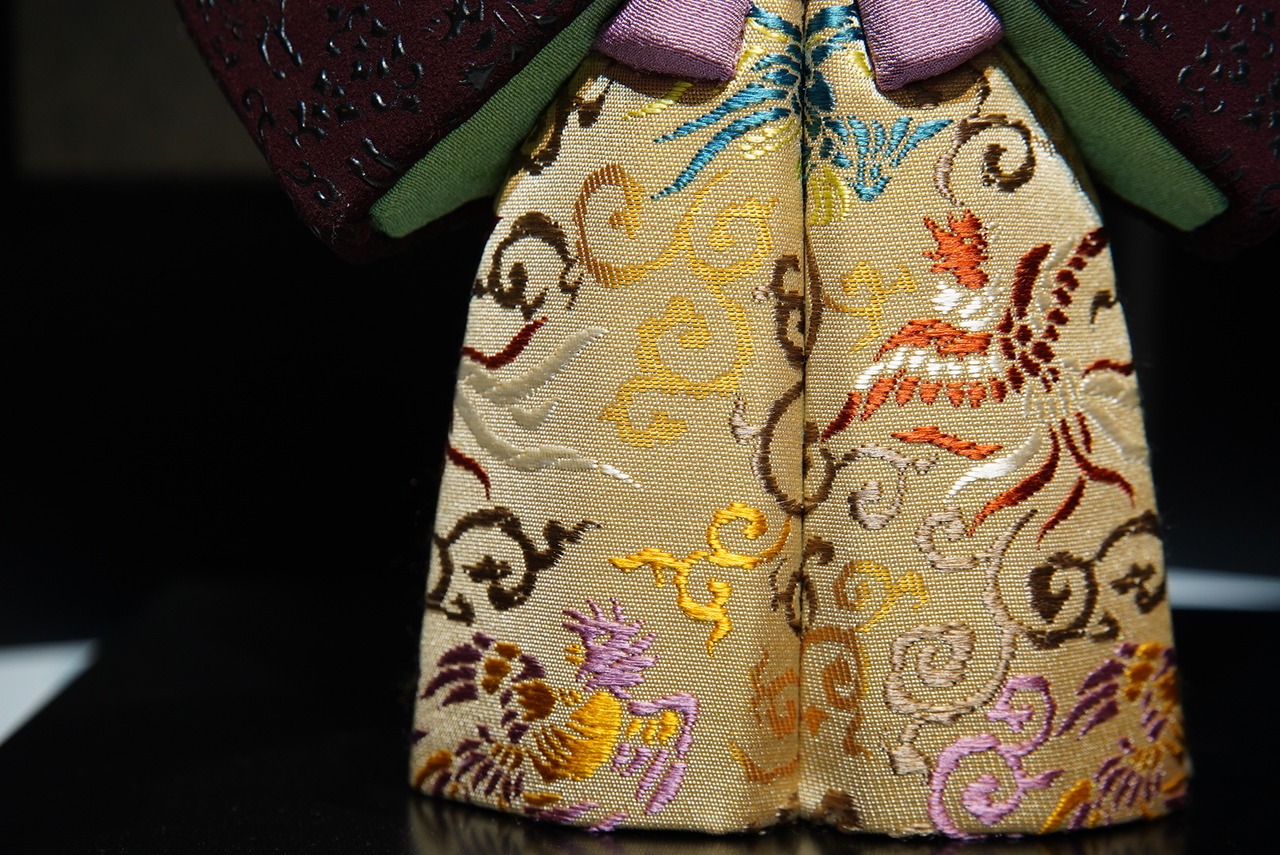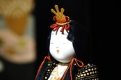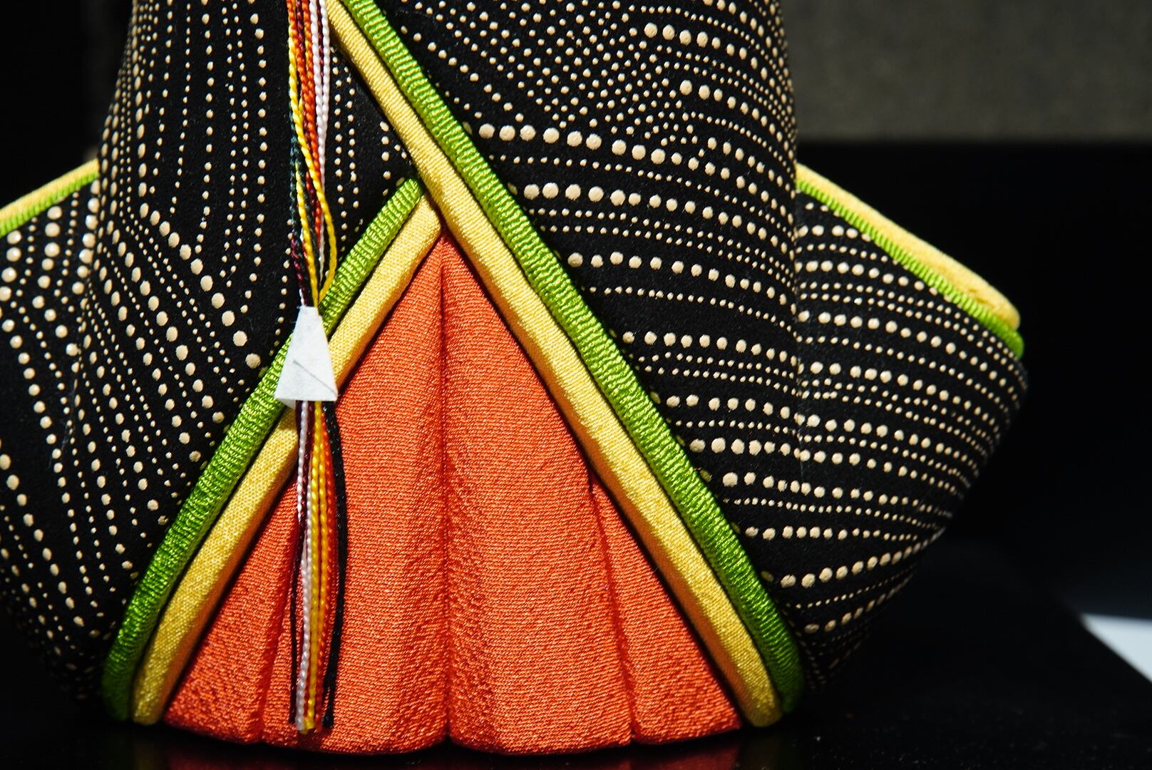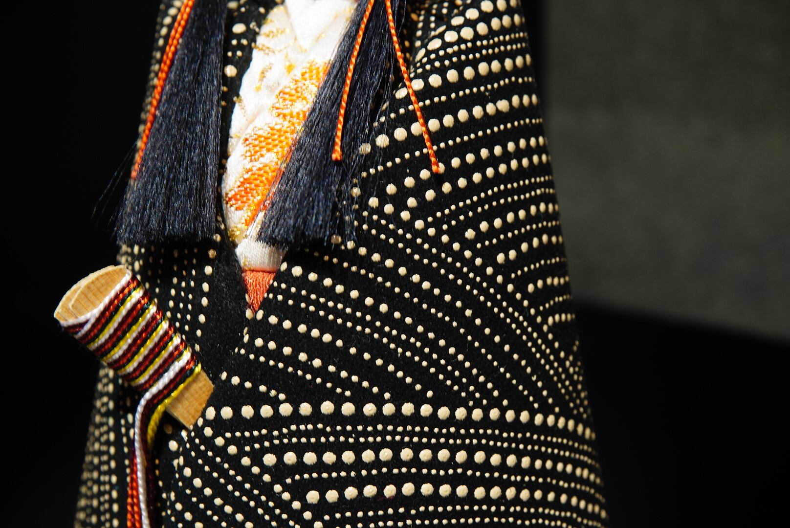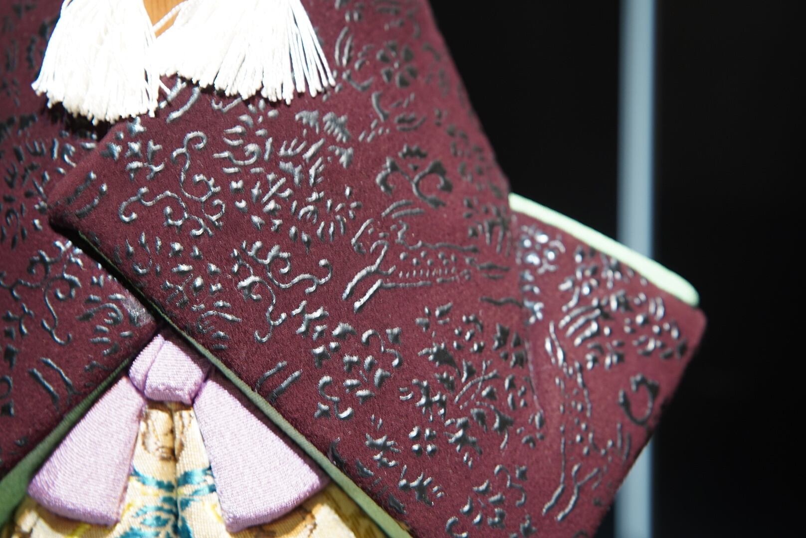 深みのある色調と独自の革文様が美しい、甲州印伝を贅沢に用いた親王飾りです。
