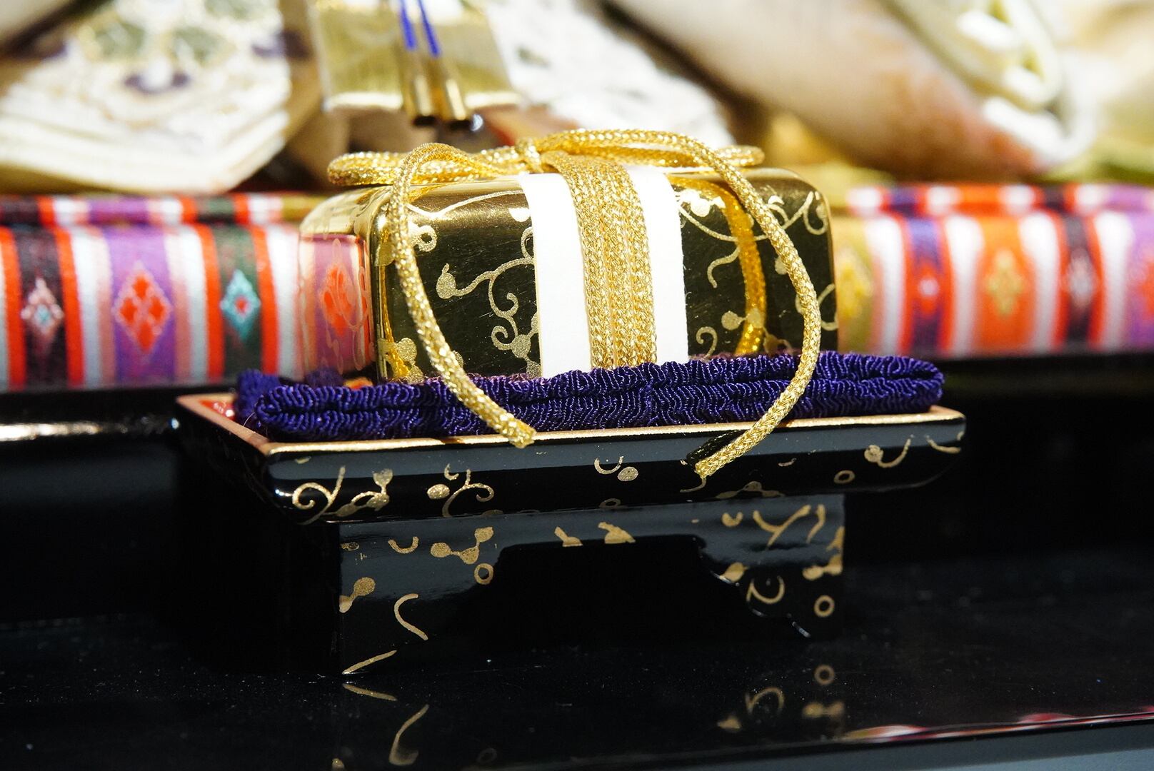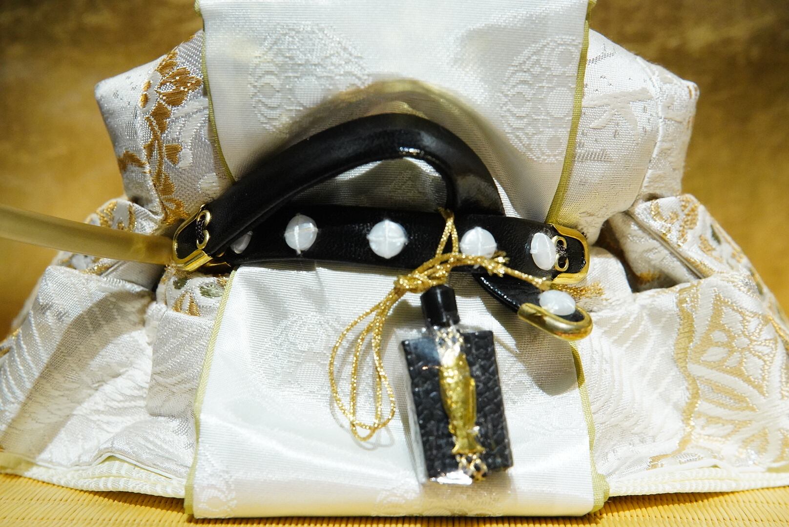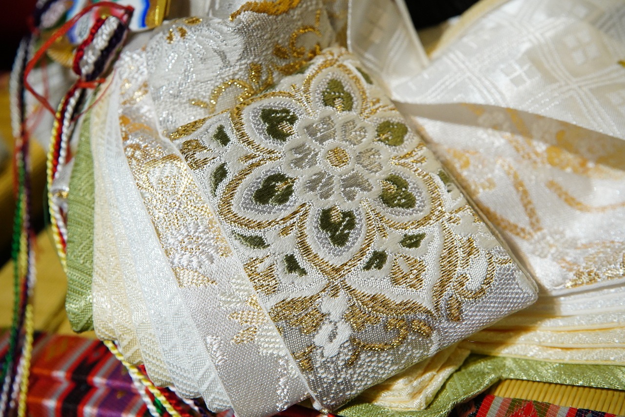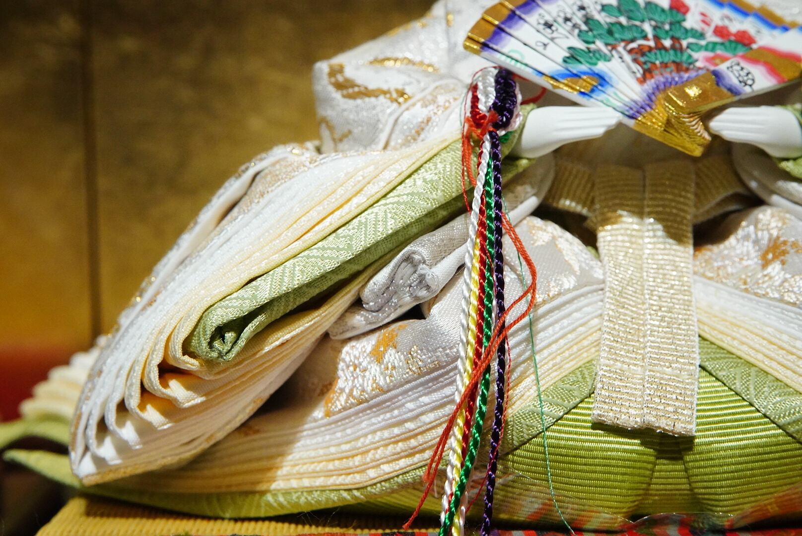 お殿様・お姫様の衣裳には、京都西陣織の帯地を贅沢に使用。細かな紋様と上品な光沢が重なり合い、格別の風格をまとっています。柔らかな色調でまとめられた衣裳は、華やかさの中に落ち着きを感じさせ、優雅な佇まいをより一層引き立てます。
