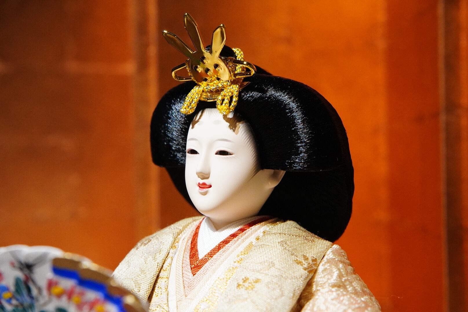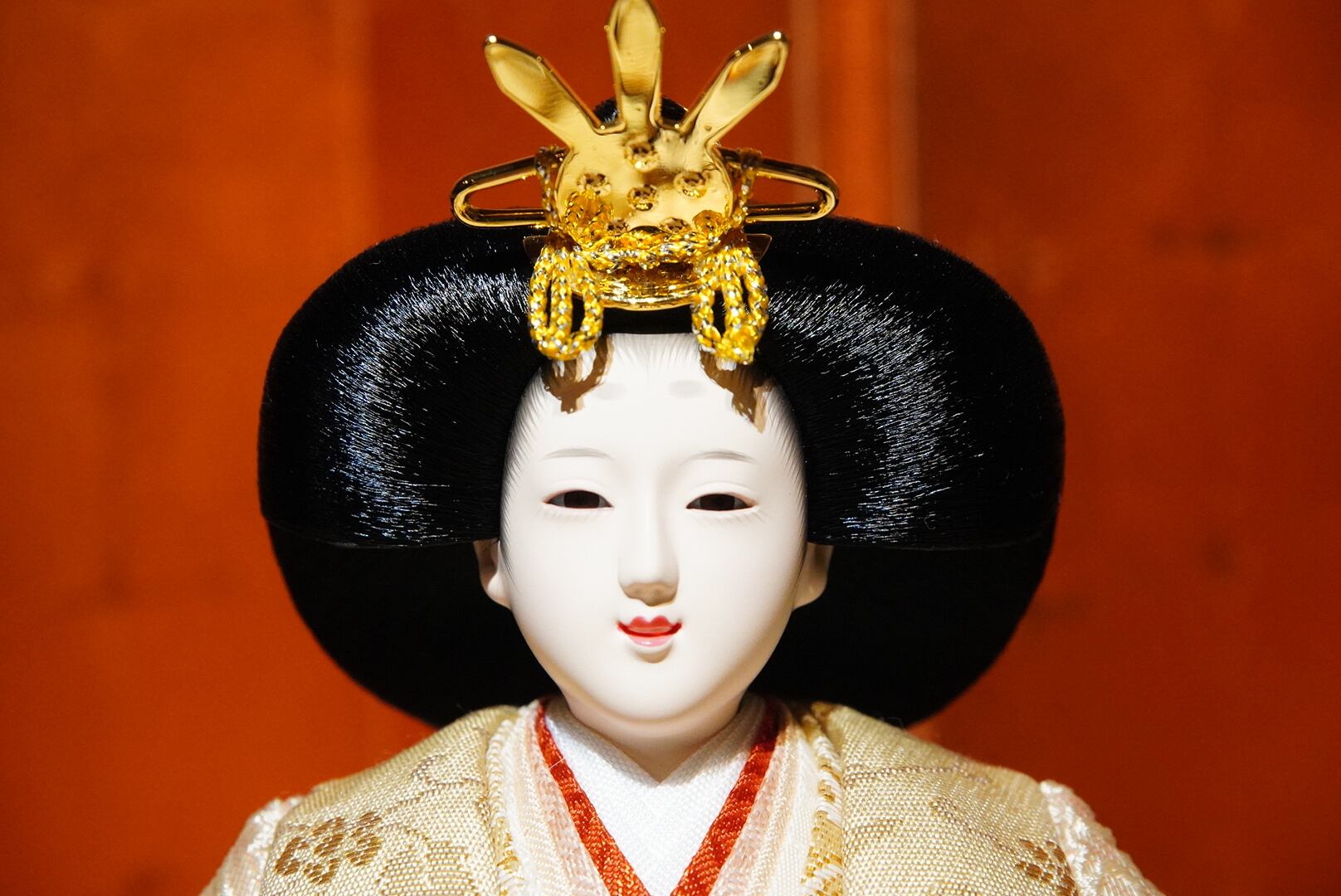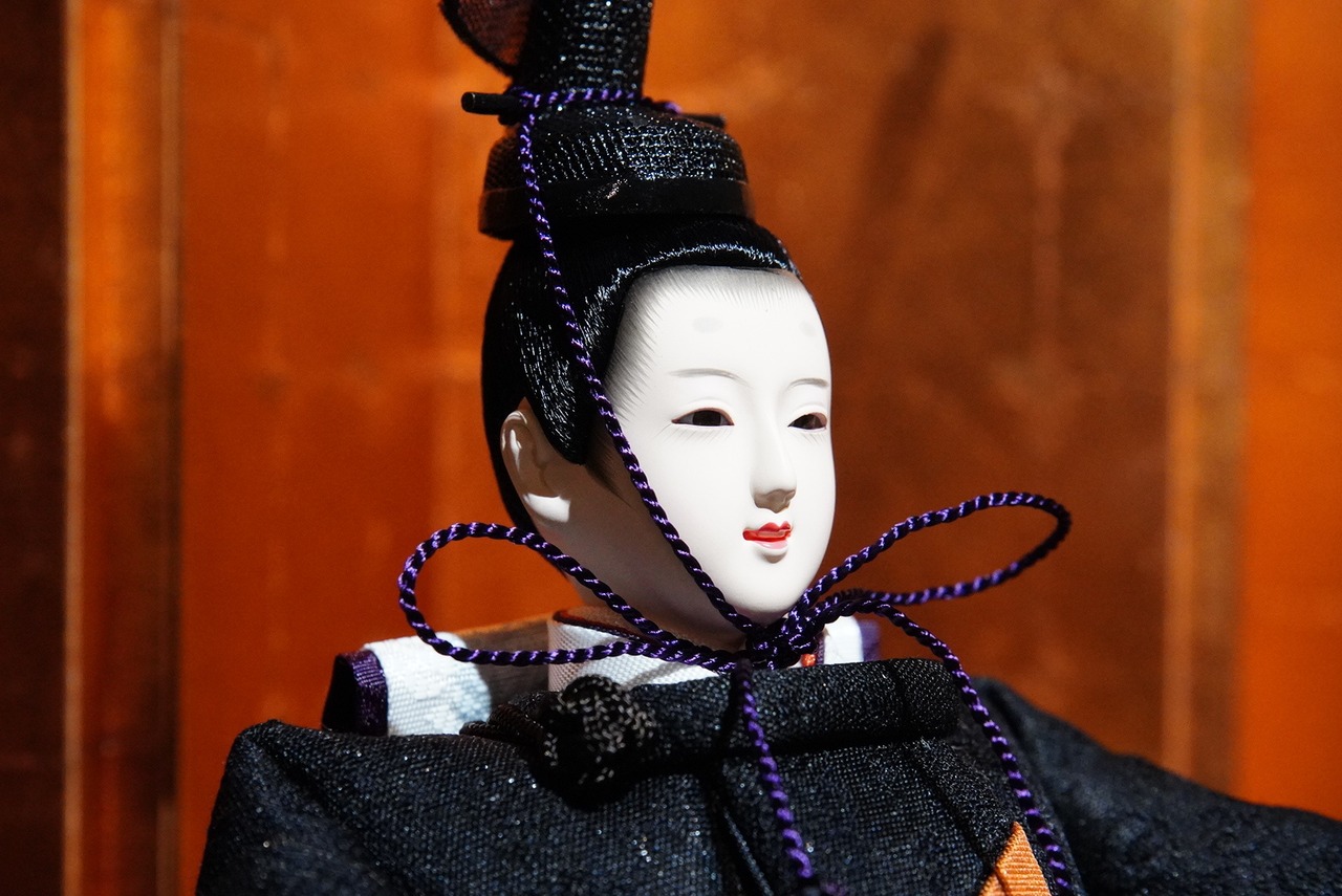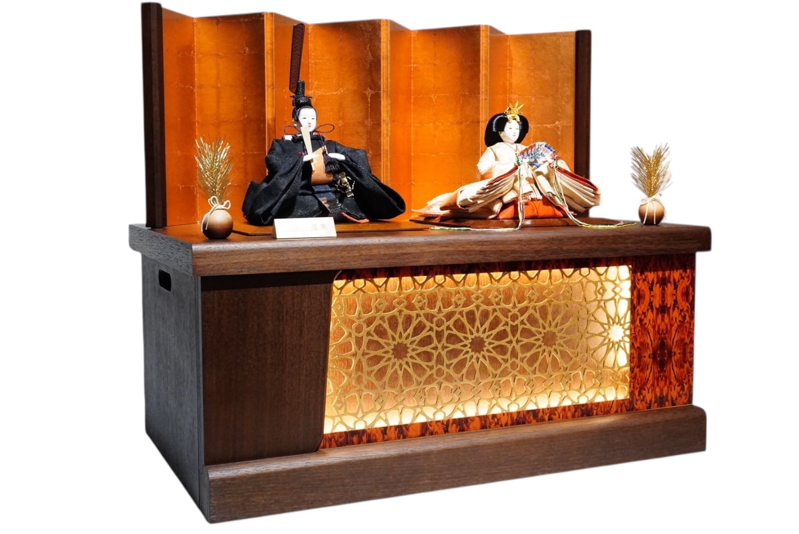 伝統美と現代的な演出が調和した、落ち着きと華やかさを兼ね備えたひな飾りです。