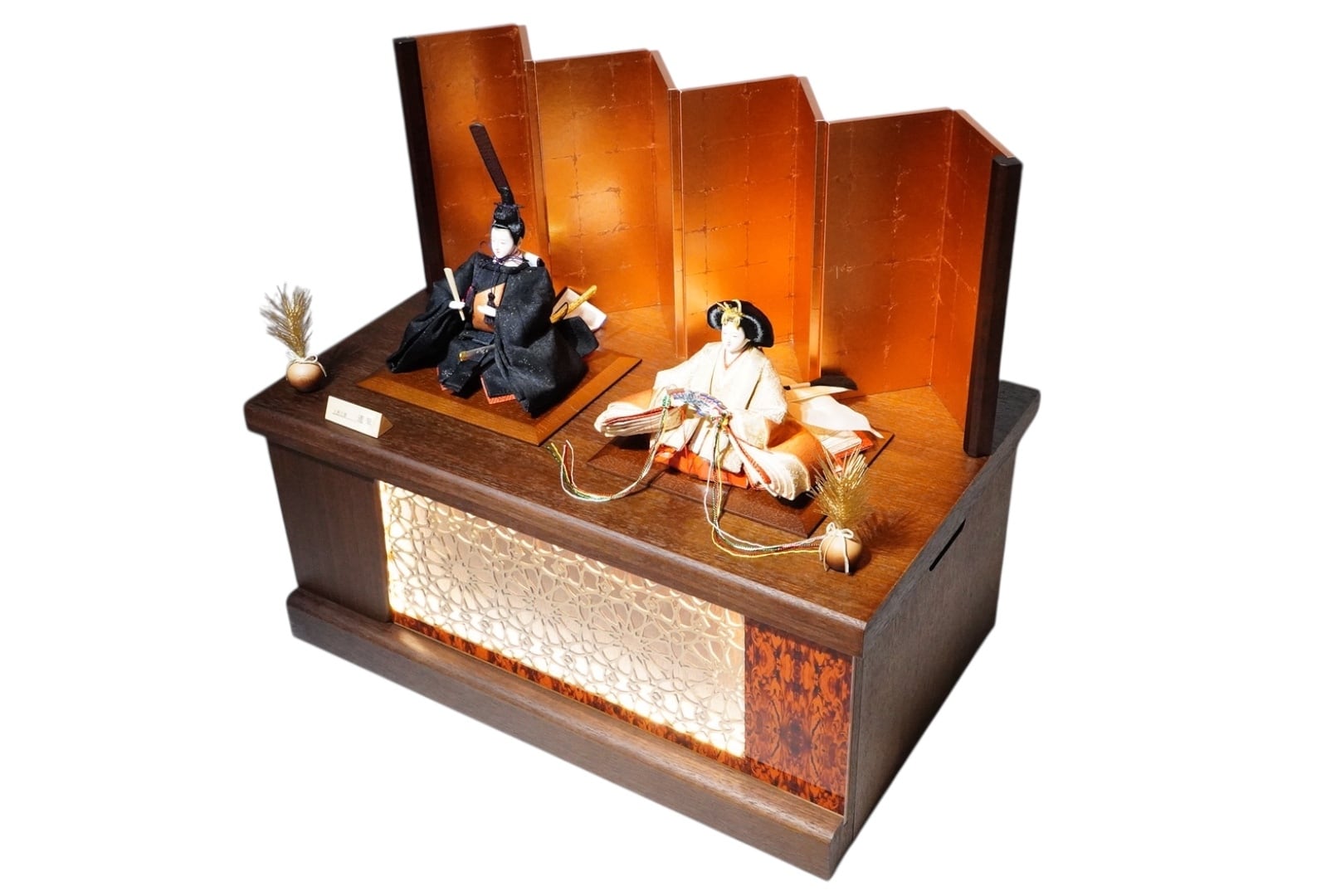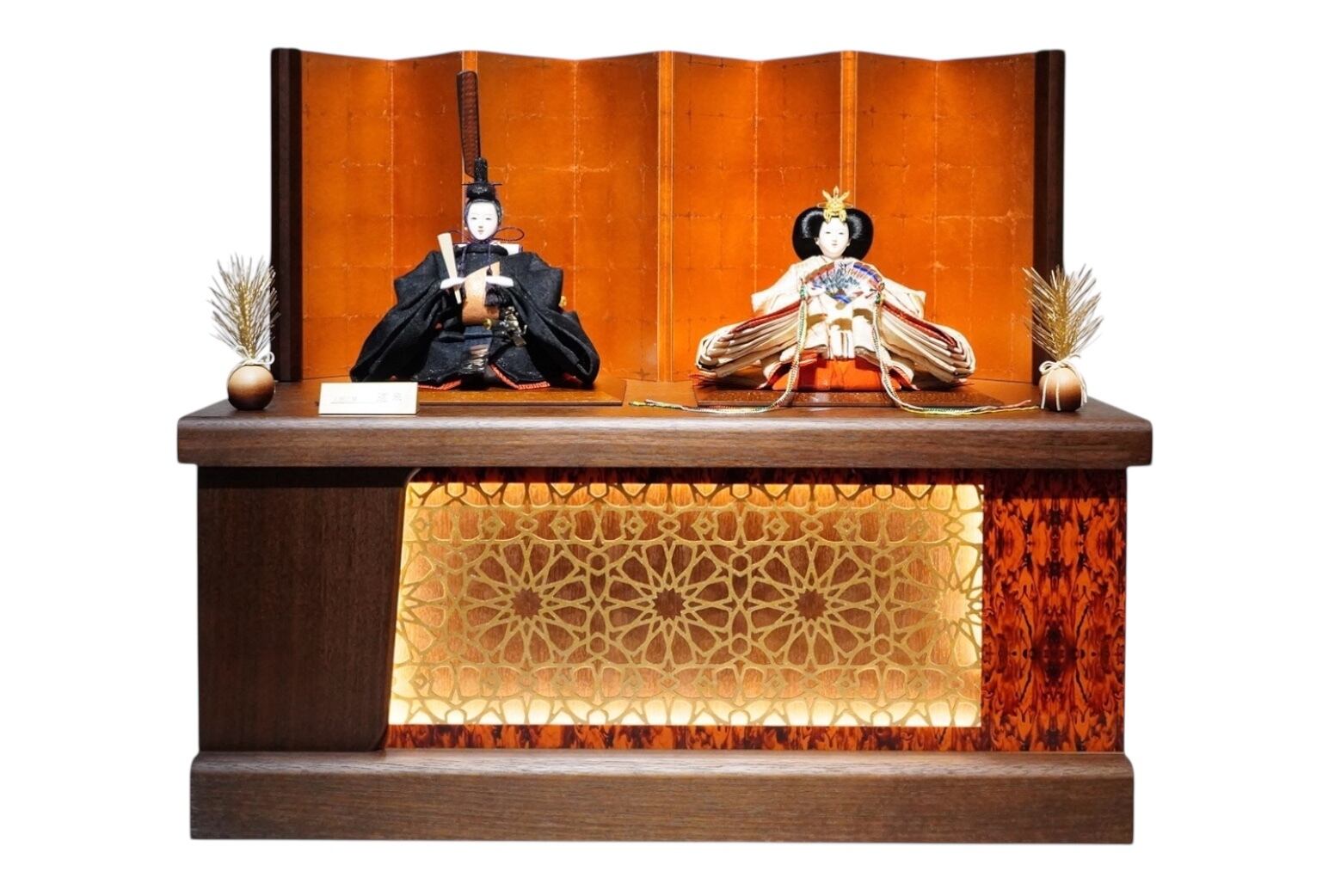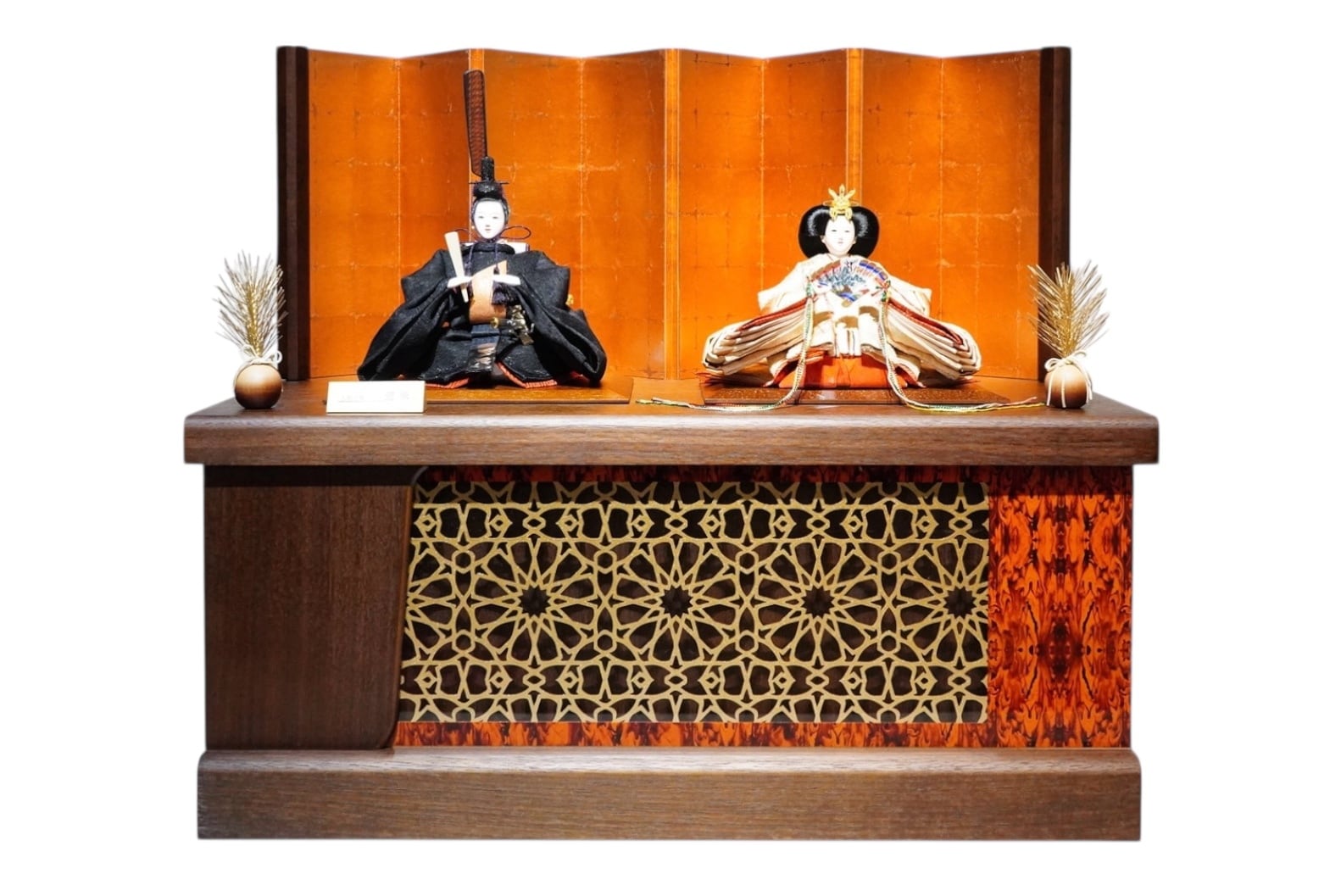 重厚感のある佇まいの中に、繊細な意匠が息づく高級親王飾りです。