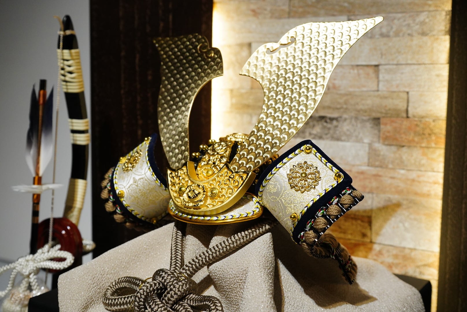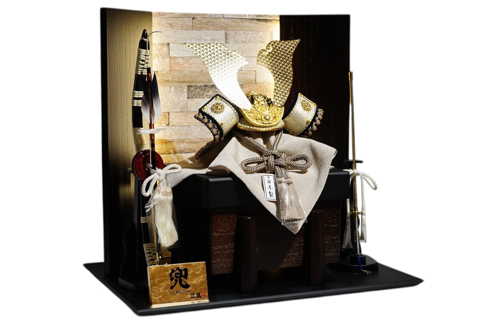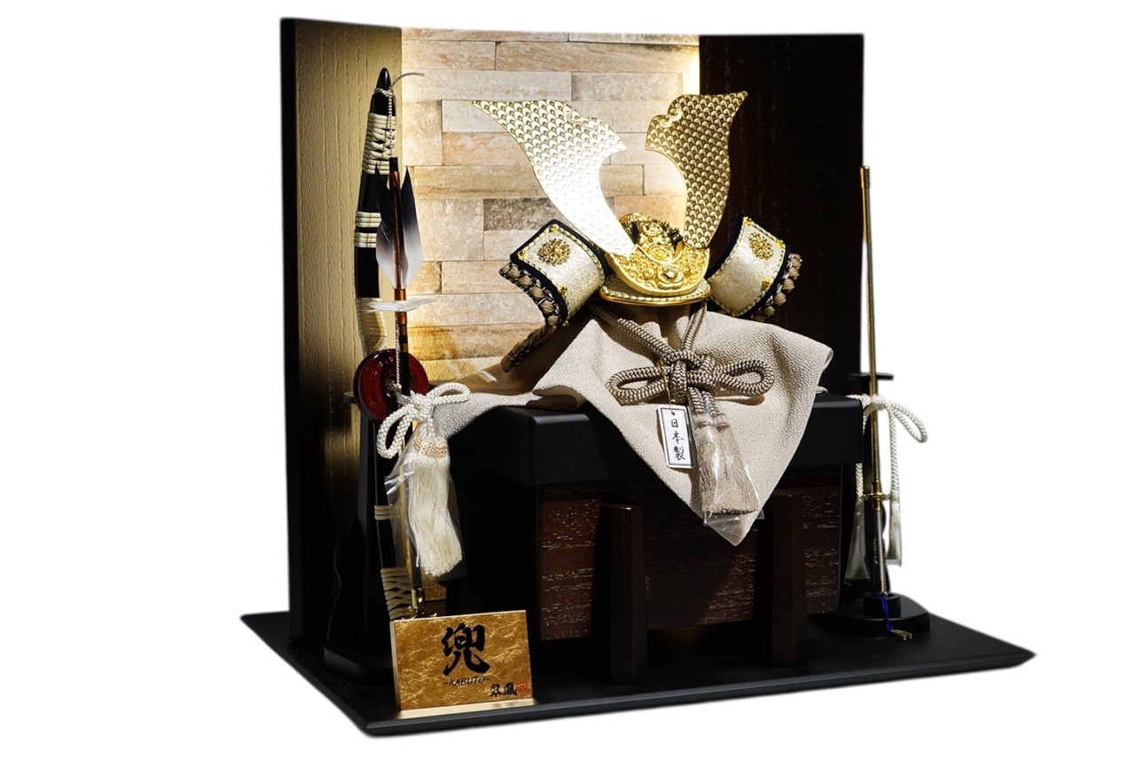 伝統的な兜飾りの格式を大切にしながら、現代的な演出を取り入れた一品。