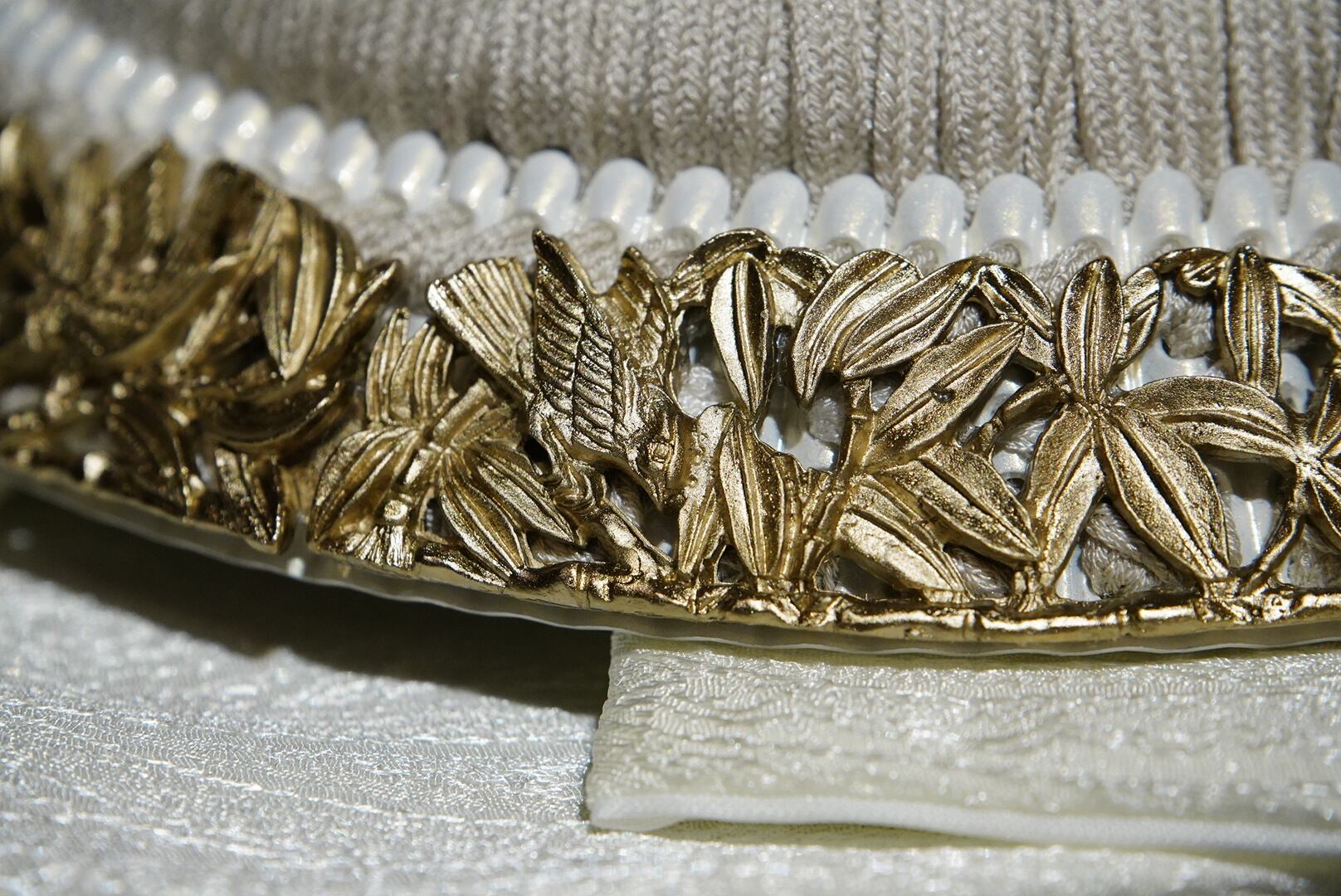 吹き返し部分には本革仕立てを採用。しっとりとした質感と深みのある表情が、細部にまで上質さを感じさせ、手仕事ならではの温もりを伝えます。