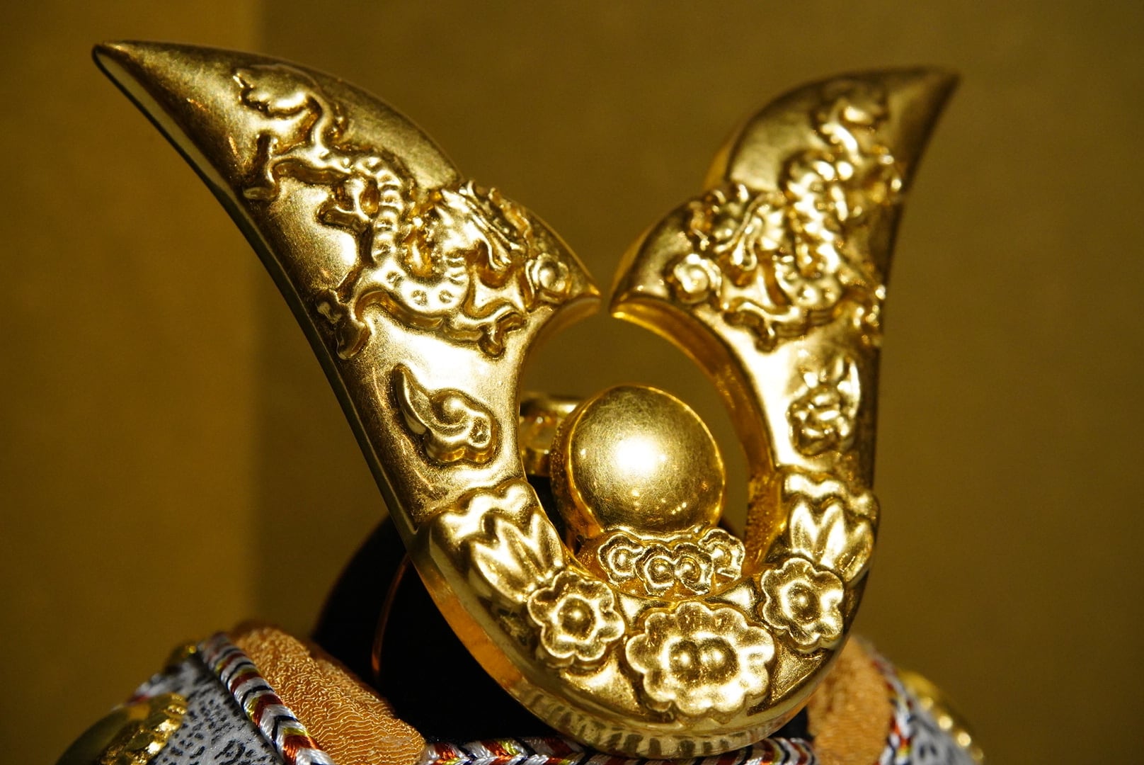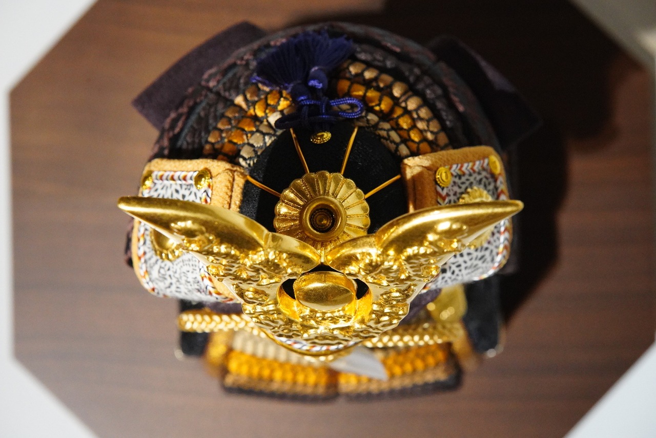 金色の兜と装飾は落ち着いた輝きに抑えられ、華美になりすぎることなく、品格ある存在感を演出しています。