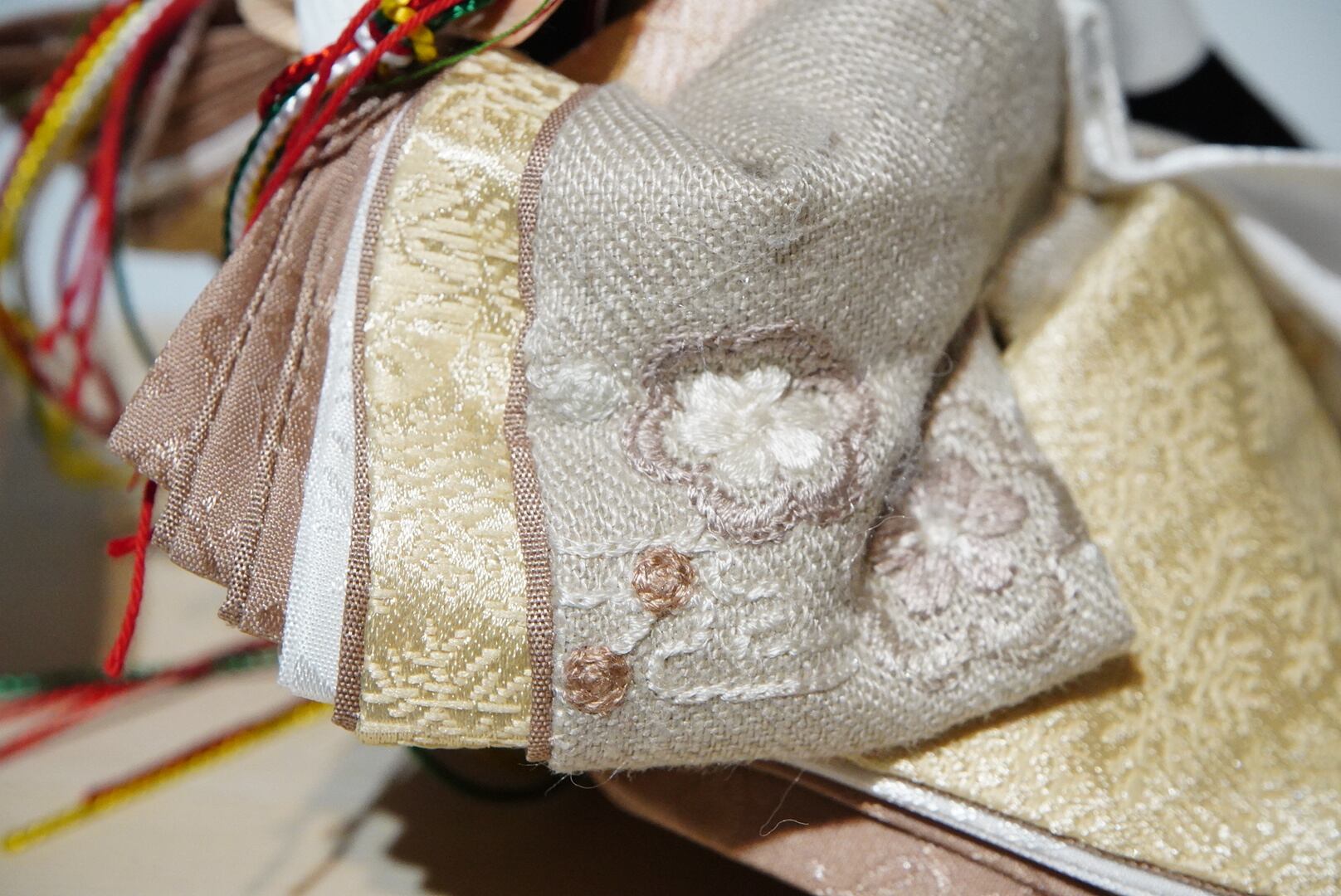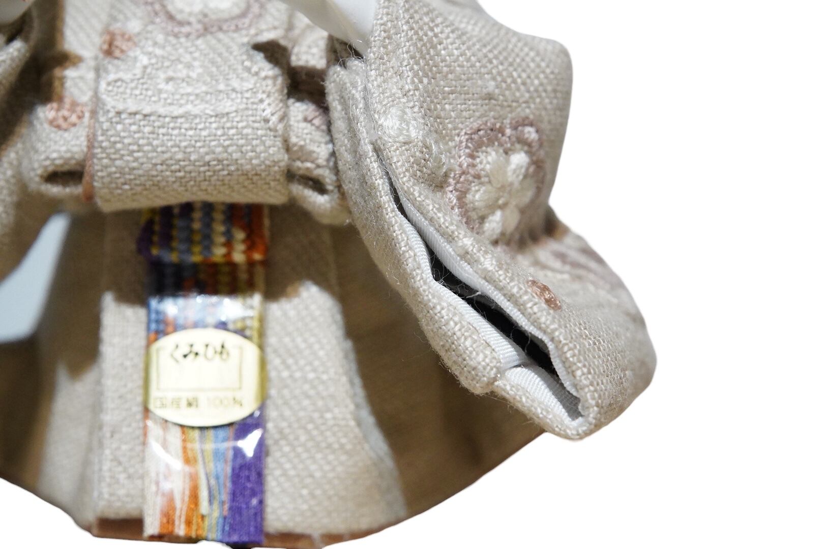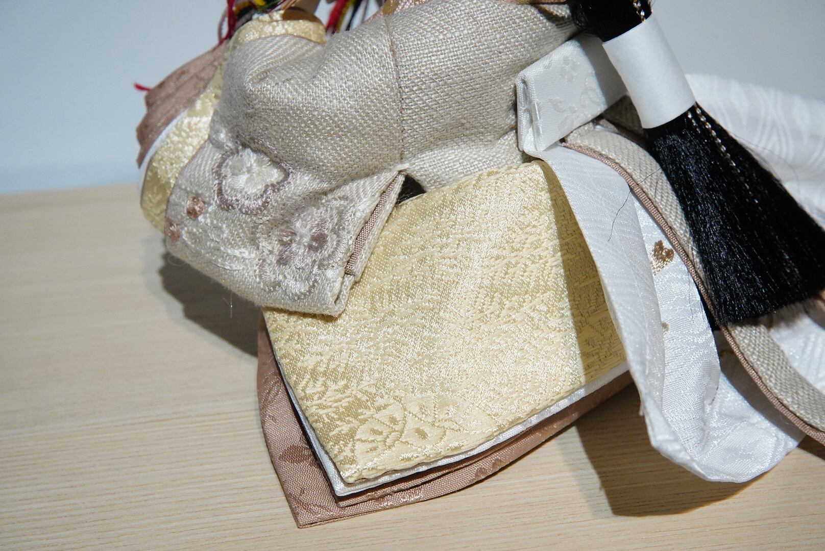 殿姫には、落ち着いた色味の衣装を合わせ、重なり合う布の表情や繊細な仕立てが美しく引き立つ仕上がりに。