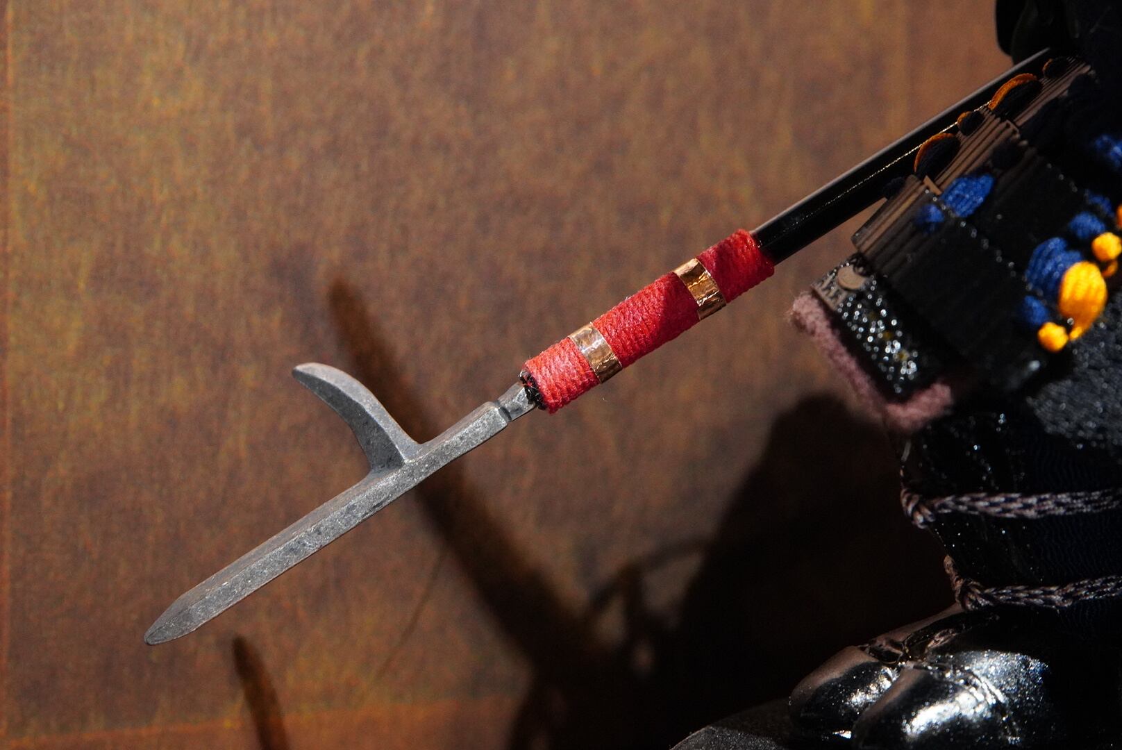 手にした槍や足元の力強い踏み出しが、武将としての勇壮さを静かに物語ります。
