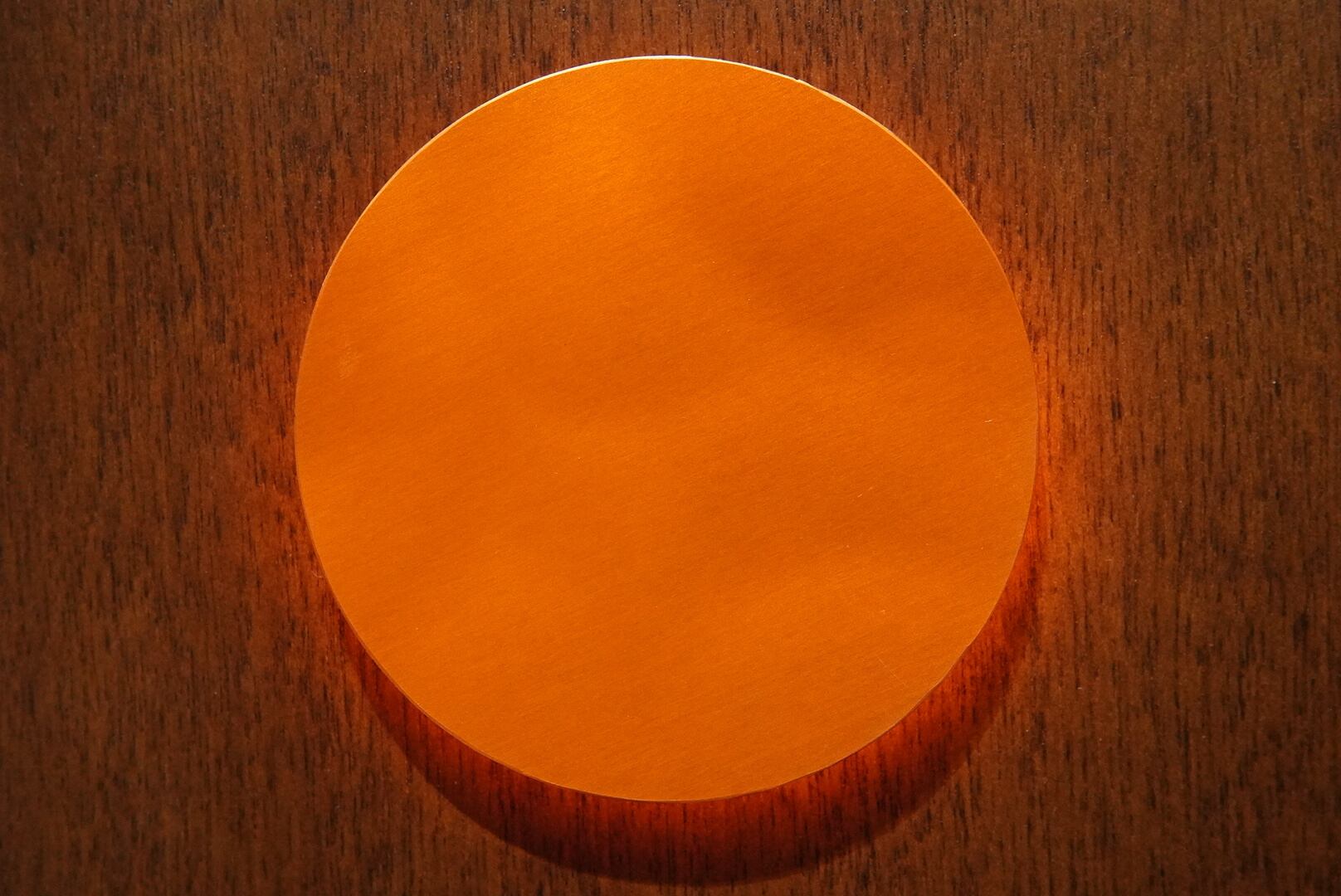 左上に配した円形の意匠にはLEDが内蔵され、灯りをともすとやわらかな光が広がり、まるで昇る陽のように大将の姿を優しく照らします。