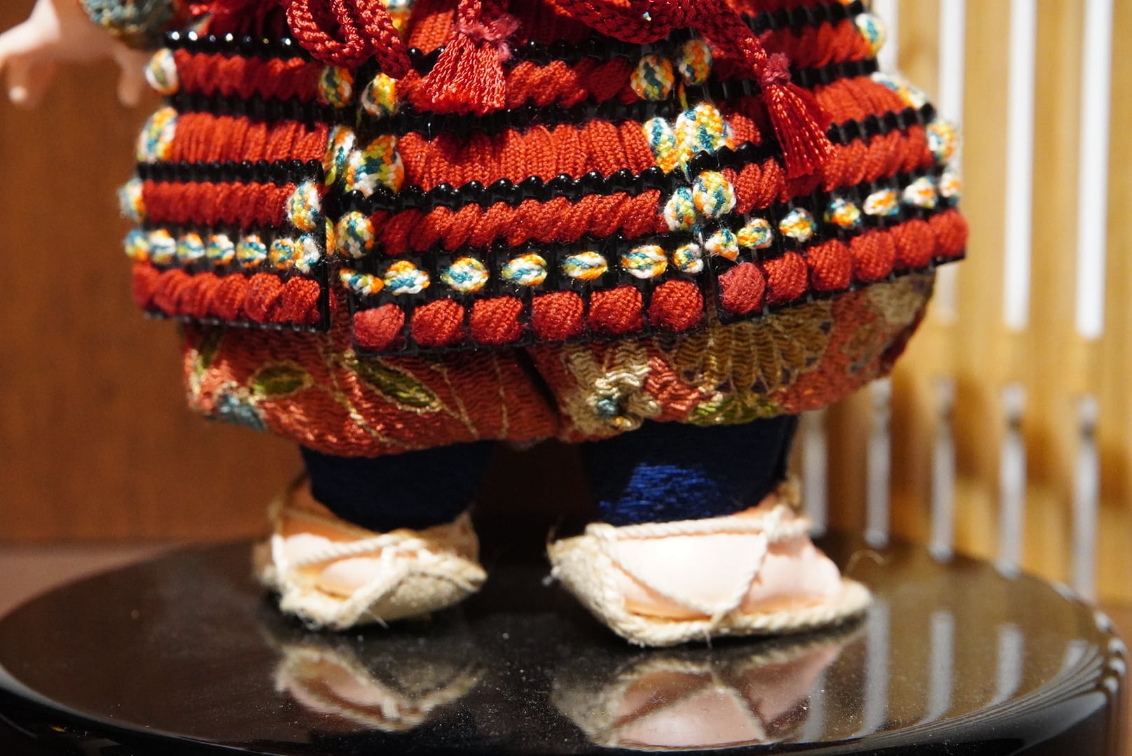手にした太刀や細部まで丁寧に仕立てられた装束が、確かな技と格調を感じさせます。