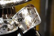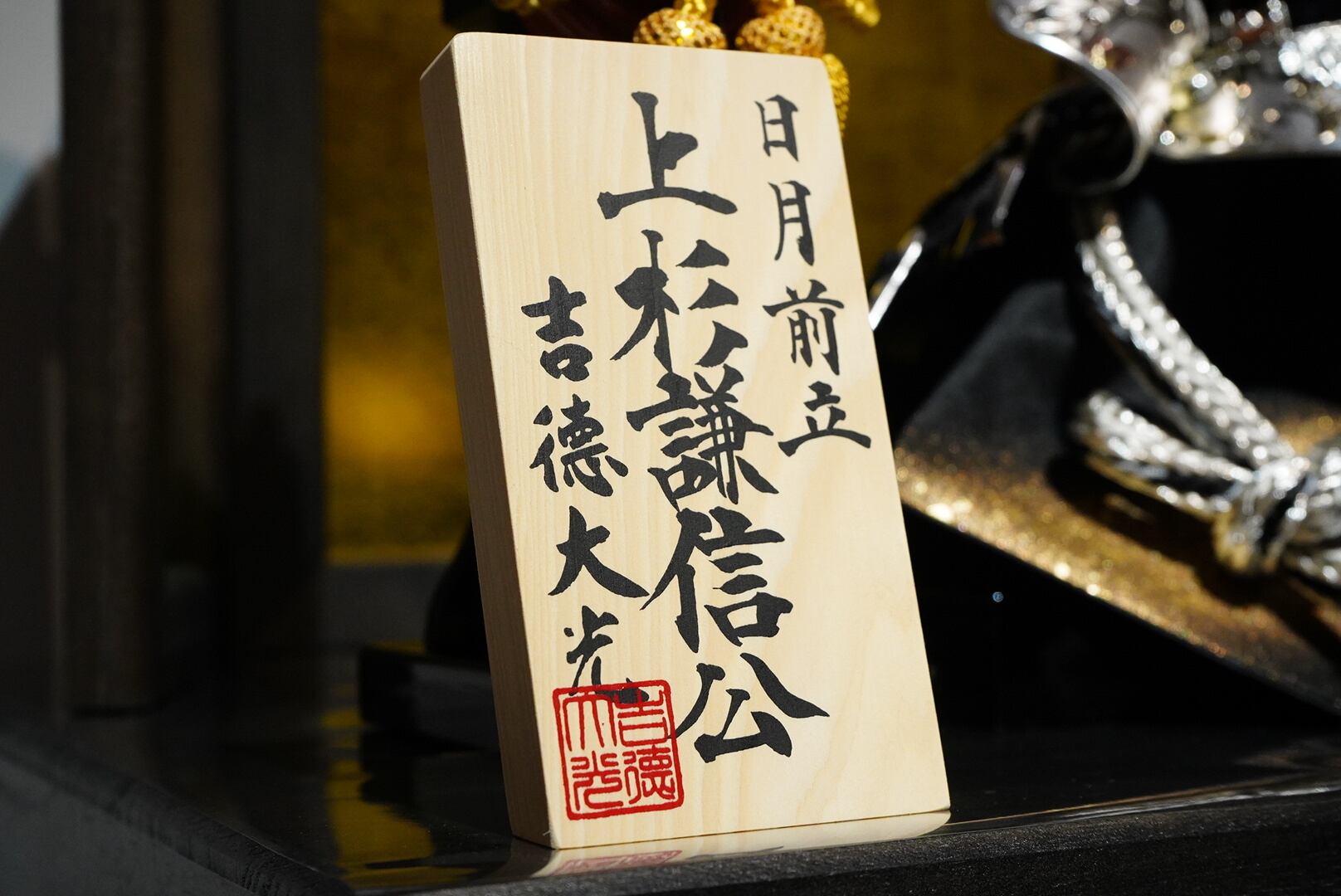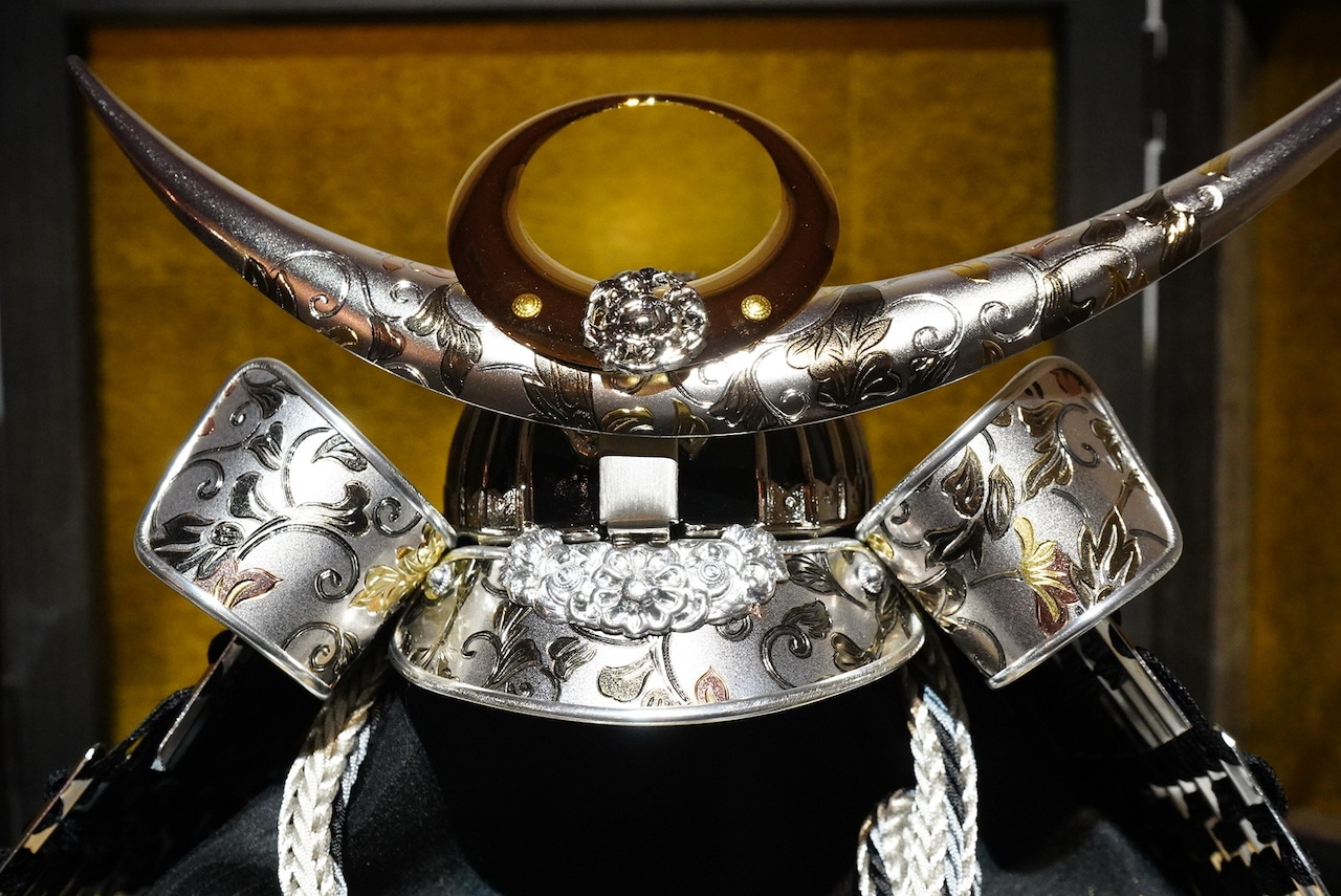 上杉謙信の兜意匠を取り入れた三日月形の鍬形は、しなやかな曲線と凛とした存在感が印象的で、勇壮さと知性をあわせ持つ佇まいを演出します。