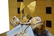 両脇の弓太刀が全体を引き締め、均整の取れた一式に仕上げられています。