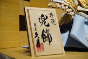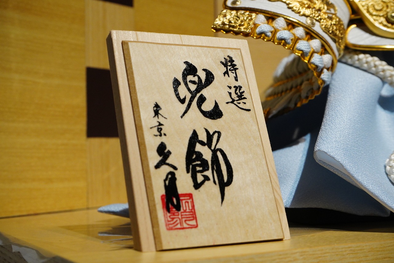 あたたかみのある木目と端正な意匠が調和する久月の 兜飾り。