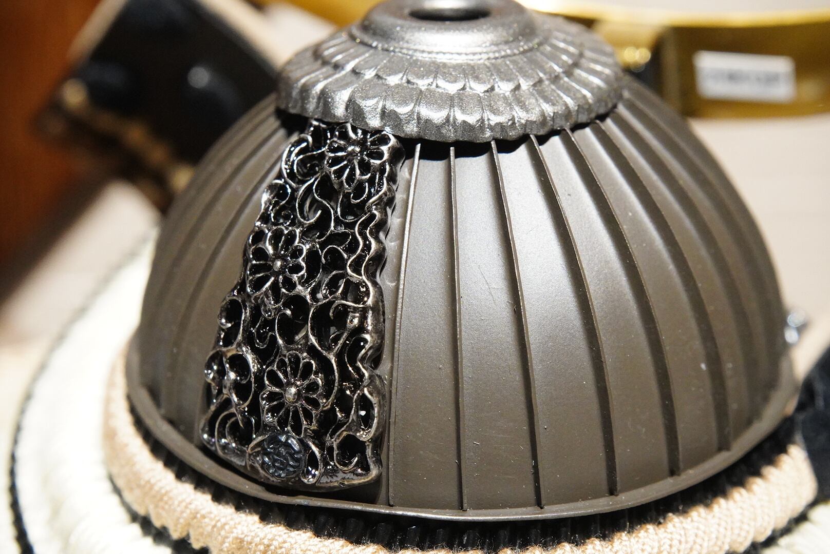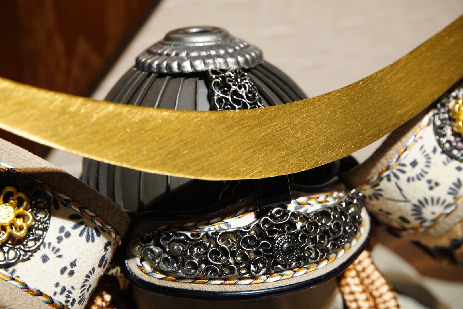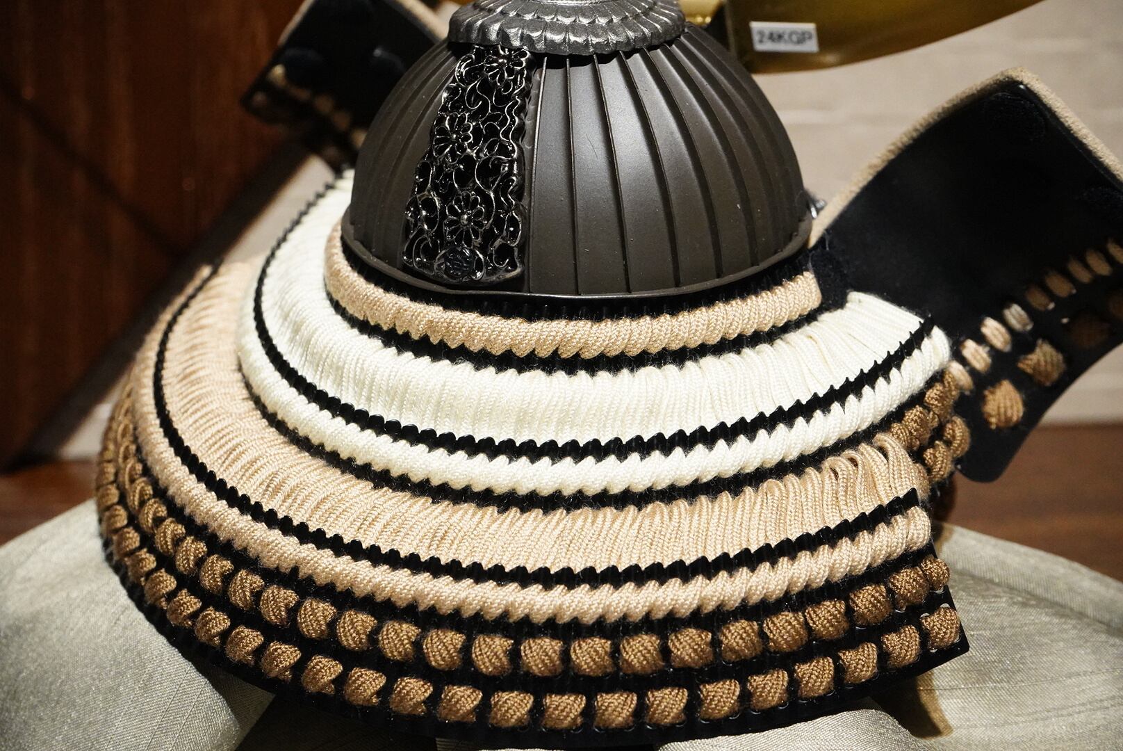 黒を基調とした兜鉢に、繊細な金具細工や落ち着いた色合いの威しを合わせることで、重厚感の中にも洗練された美しさが感じられる仕上がりとなっています。