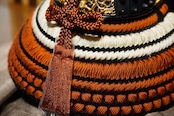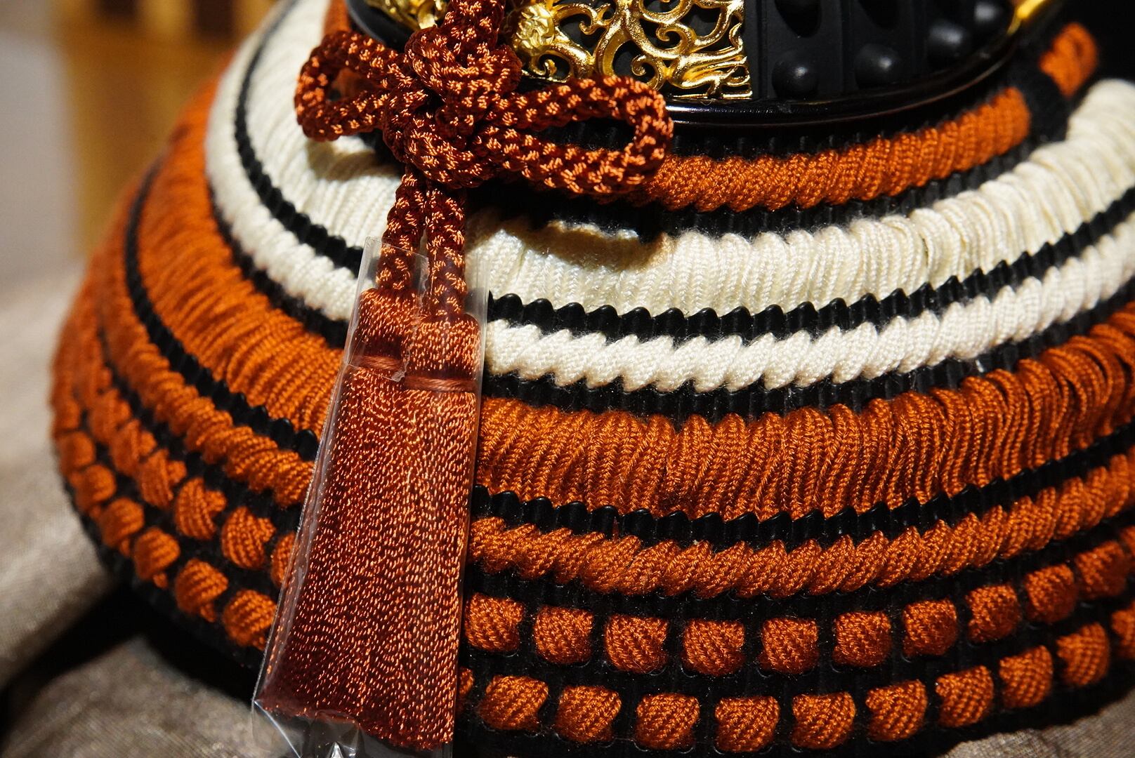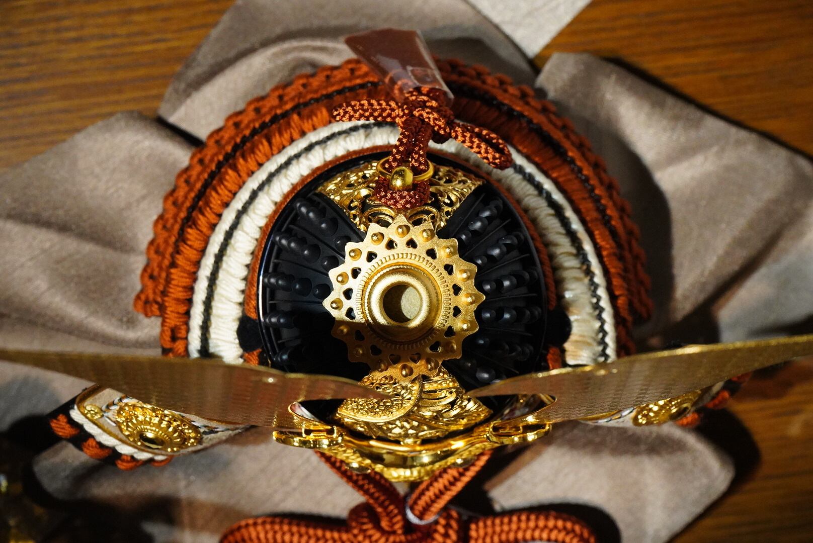 兜には精緻な金具細工が施され、落ち着いた色合いの威しや忍び緒が調和し、重厚でありながら上品な佇まいを演出。