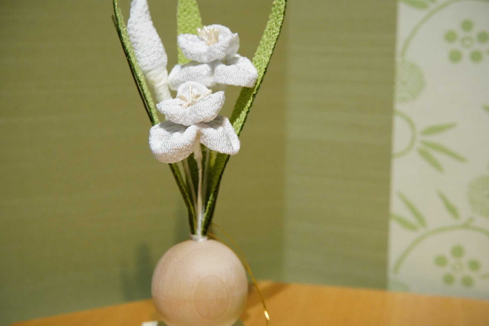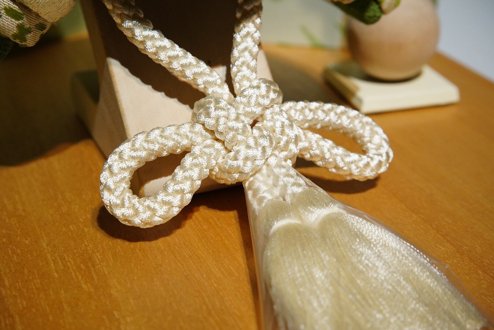 白い組紐が清らかさを添え、柔和で上質な雰囲気を引き立てています。