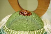 やさしい木肌の鍬形は、丸みを帯びた愛らしい意匠でありながら、凛とした品格を湛え、全体に穏やかな存在感をもたらします。