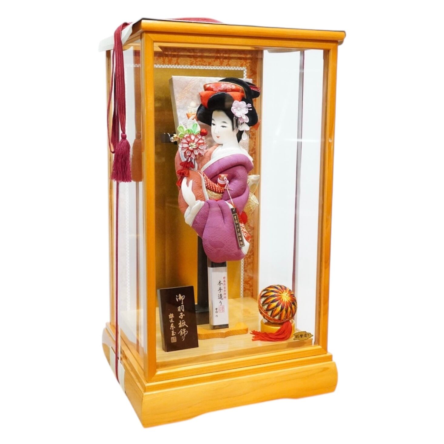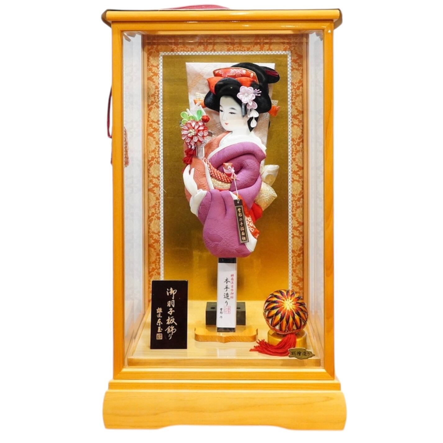 手には華やかな造花を持ち、愛らしい鞠飾りが添えられた、雅やかな仕上がりでございます。