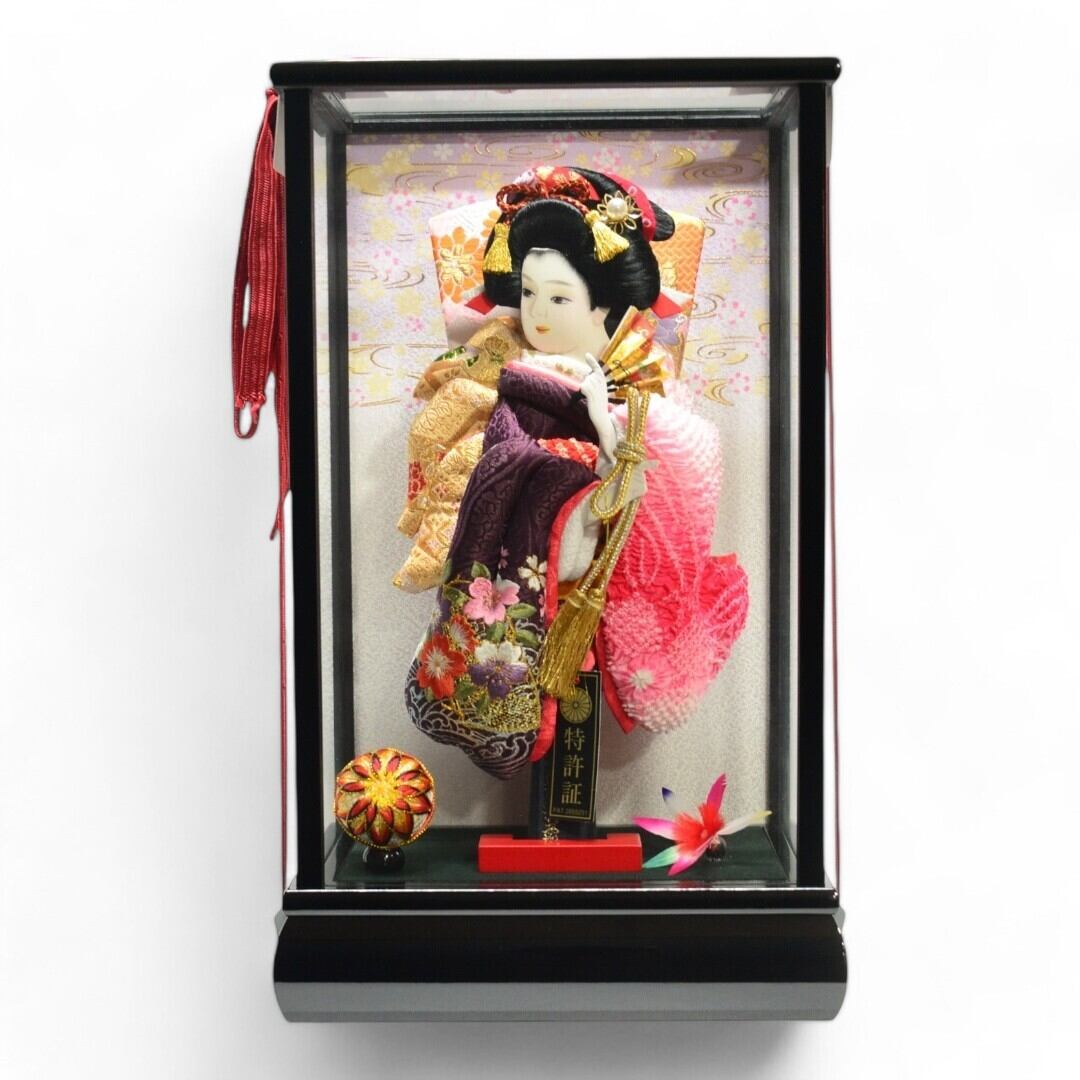 手には扇を持ち、隣にはかわいらしい鞠が添えられた、雅な仕上がり。