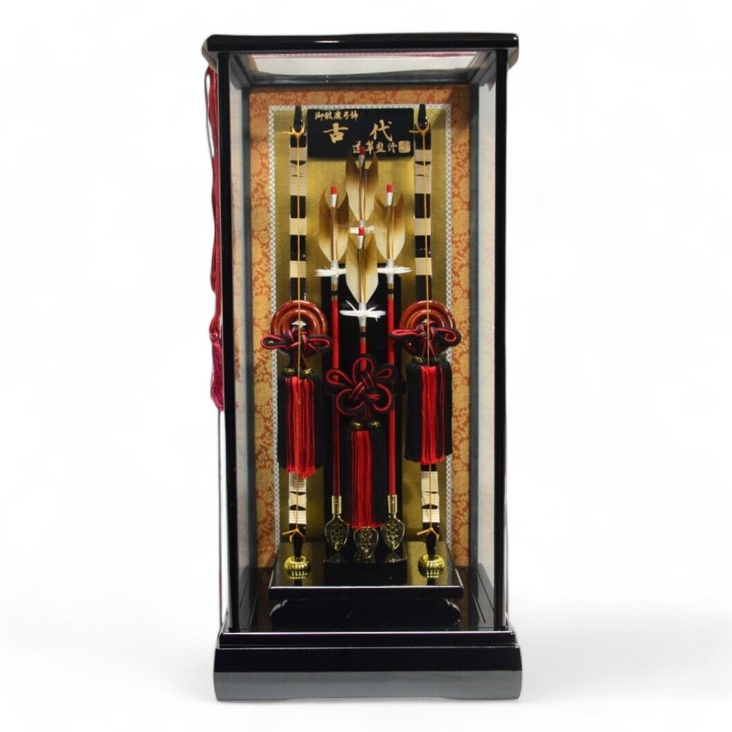 男の子の初正月を祝う、本格的なケース飾りの破魔弓です。