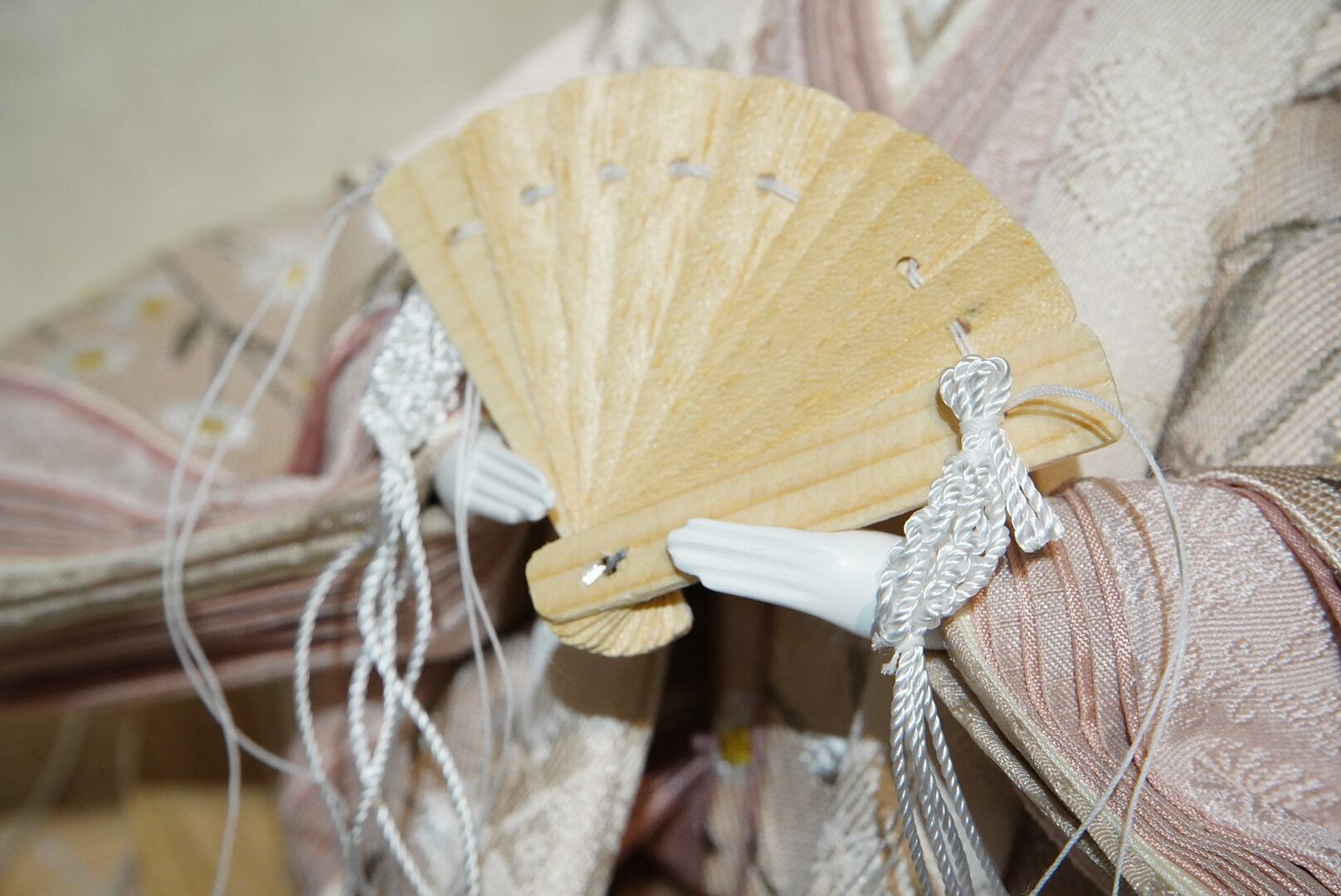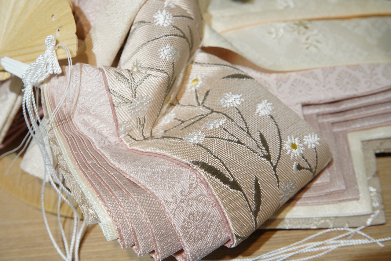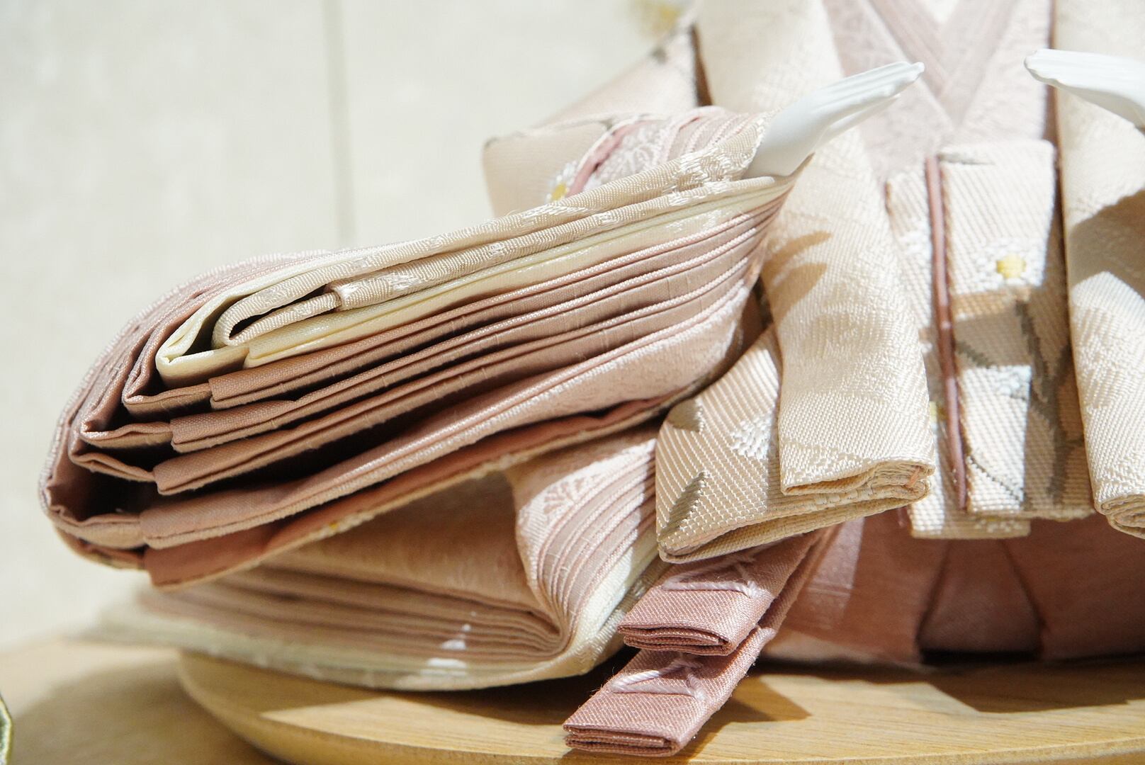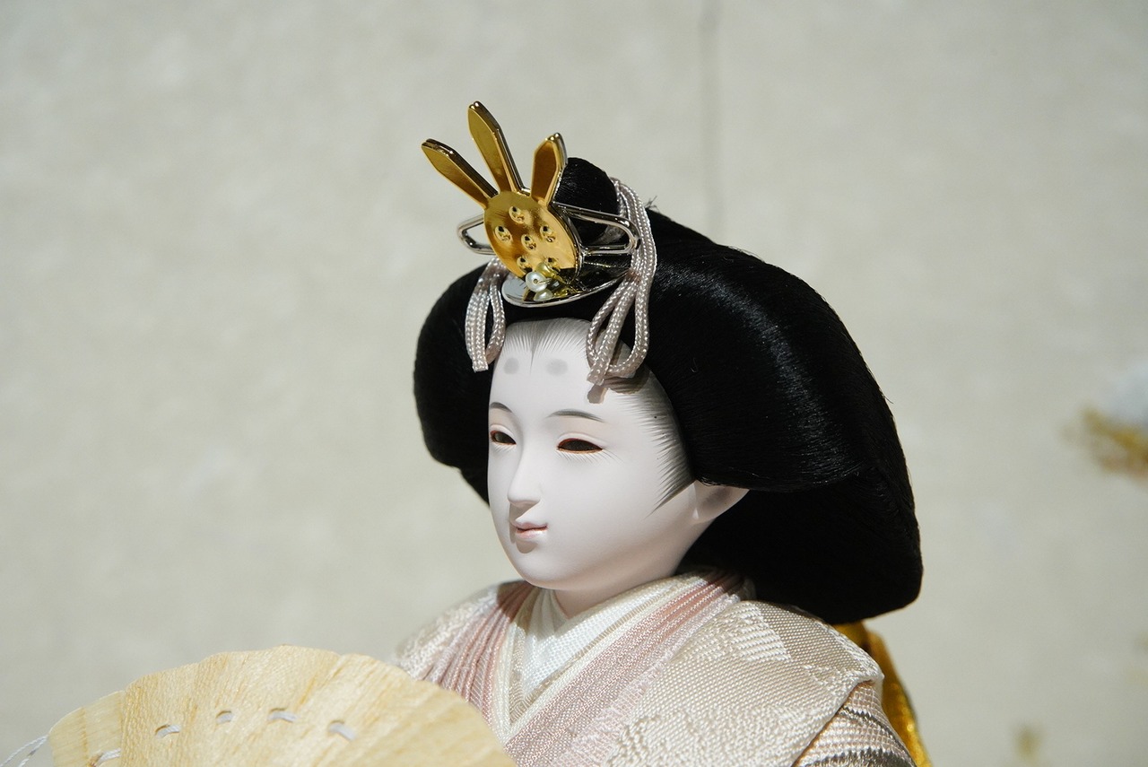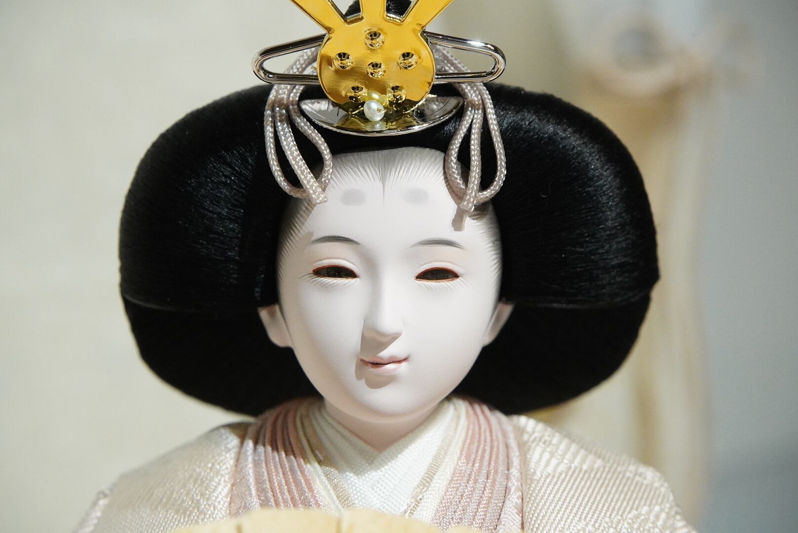 お雛様は桜色からベージュへと移ろう優しい重ねが、柔らかで女性らしい華やぎを添えています。