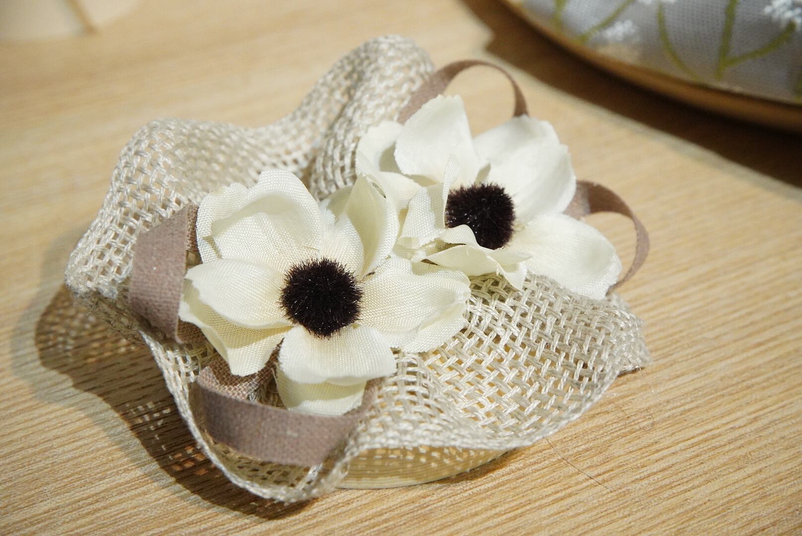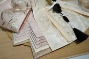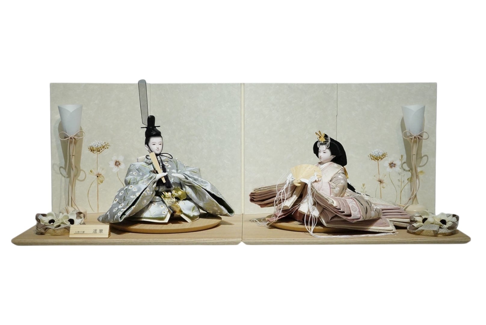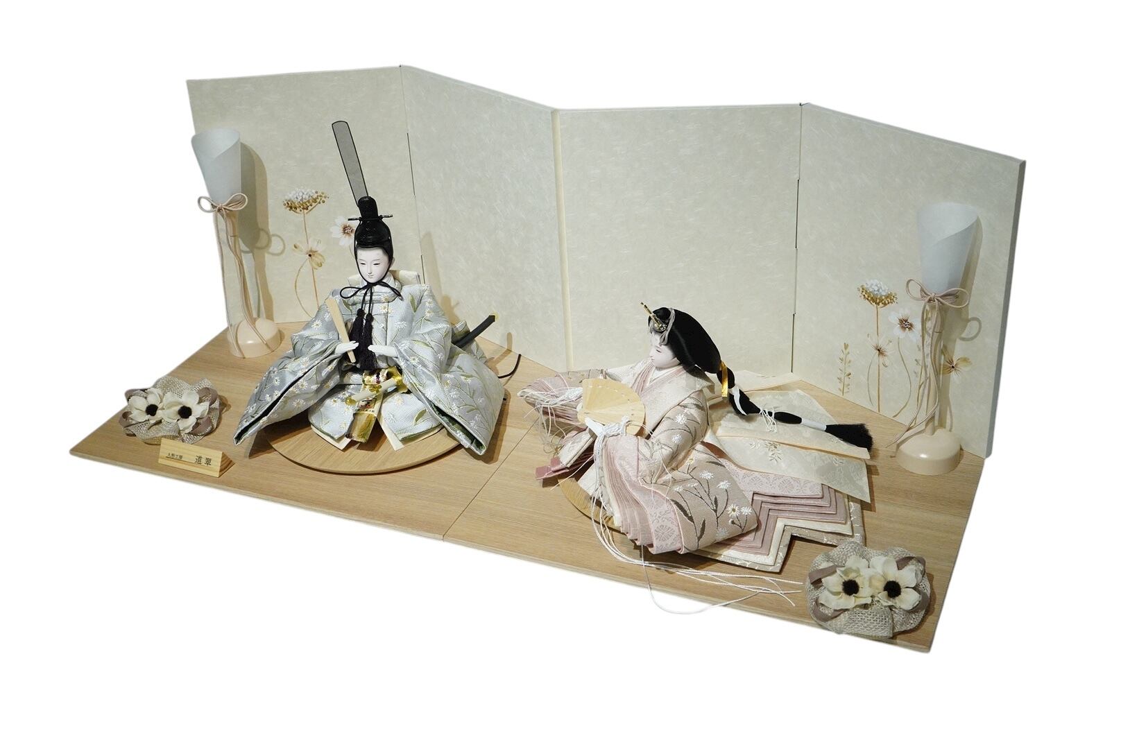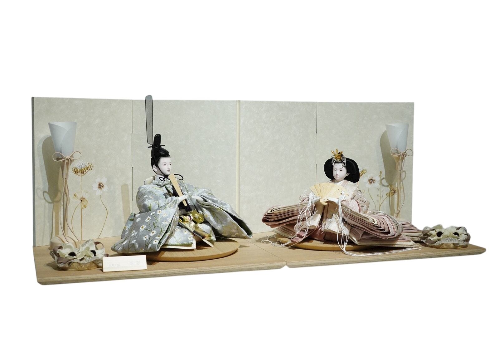 淡いグレージュと生成りを基調とした、気品あふれる親王飾りです。