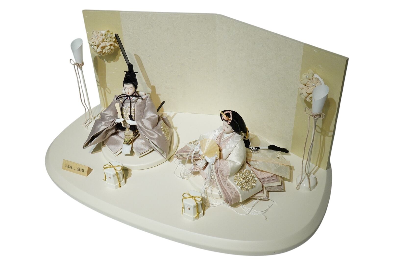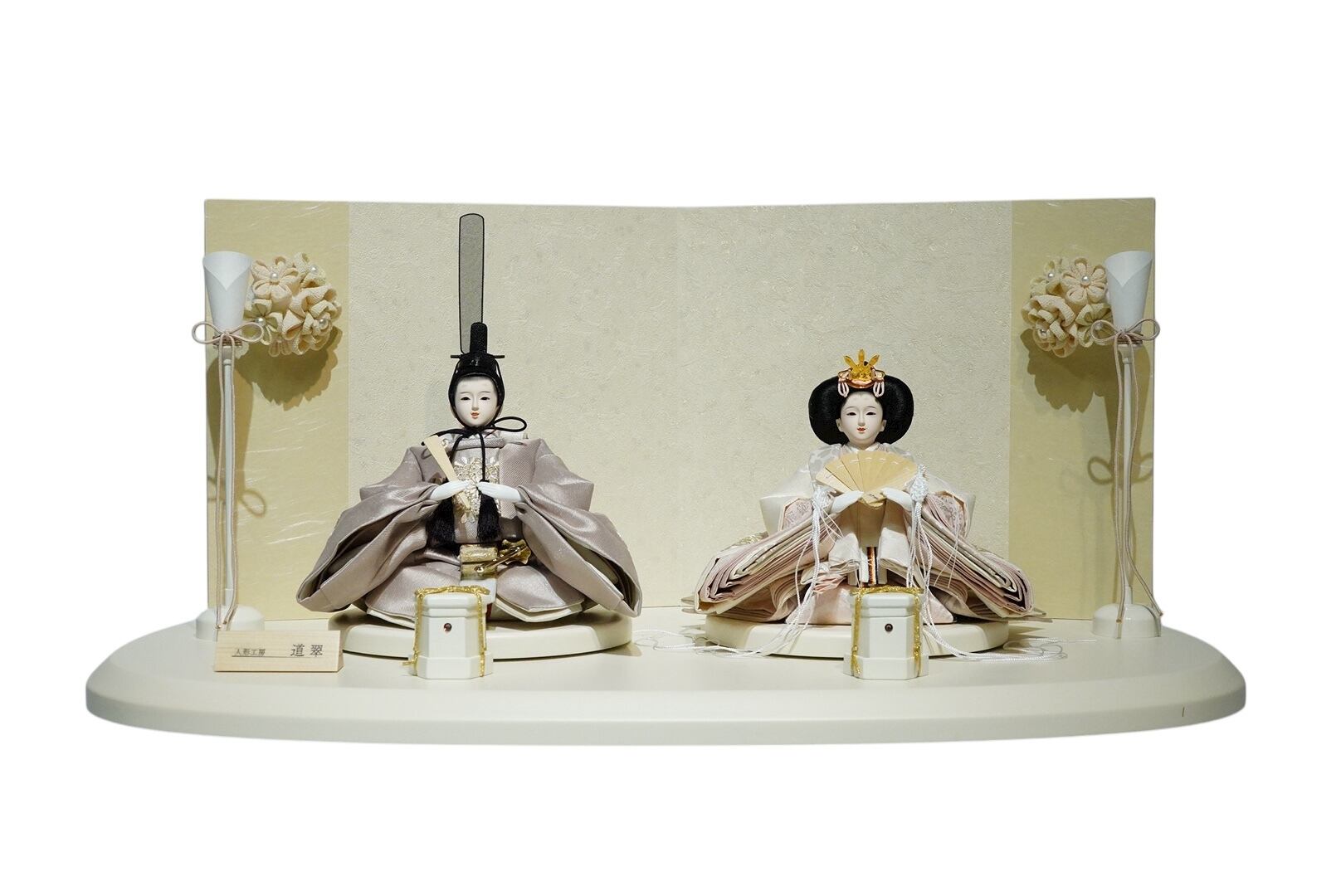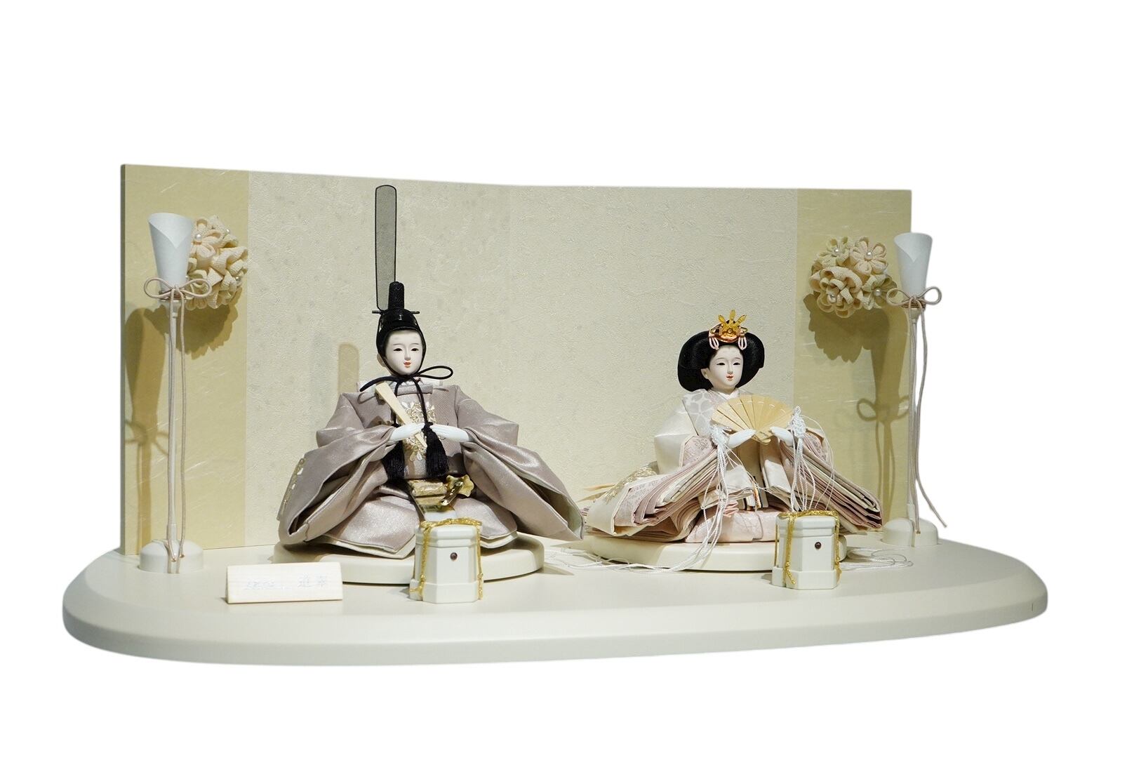 上品なグレージュと淡い桜色を基調にした、洗練された雛飾りです。