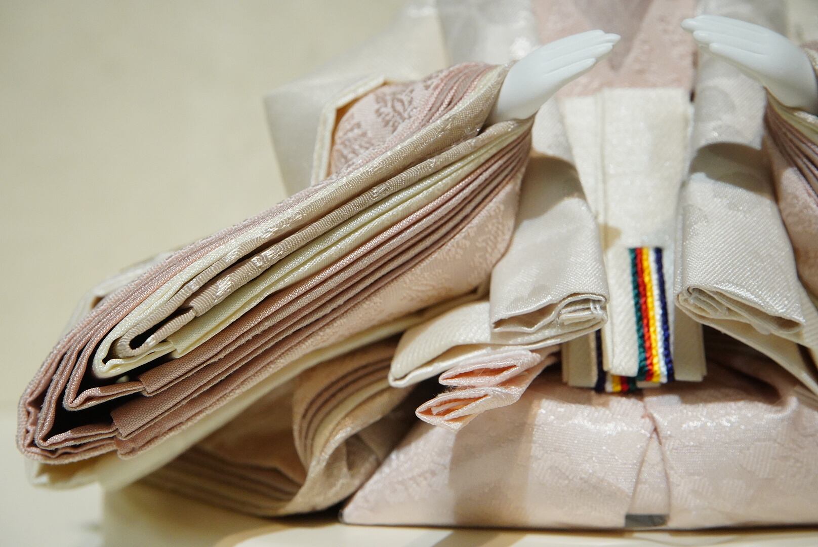 お雛様は淡いピンクの重ねが優しく広がり、静かな華やぎを添えます。