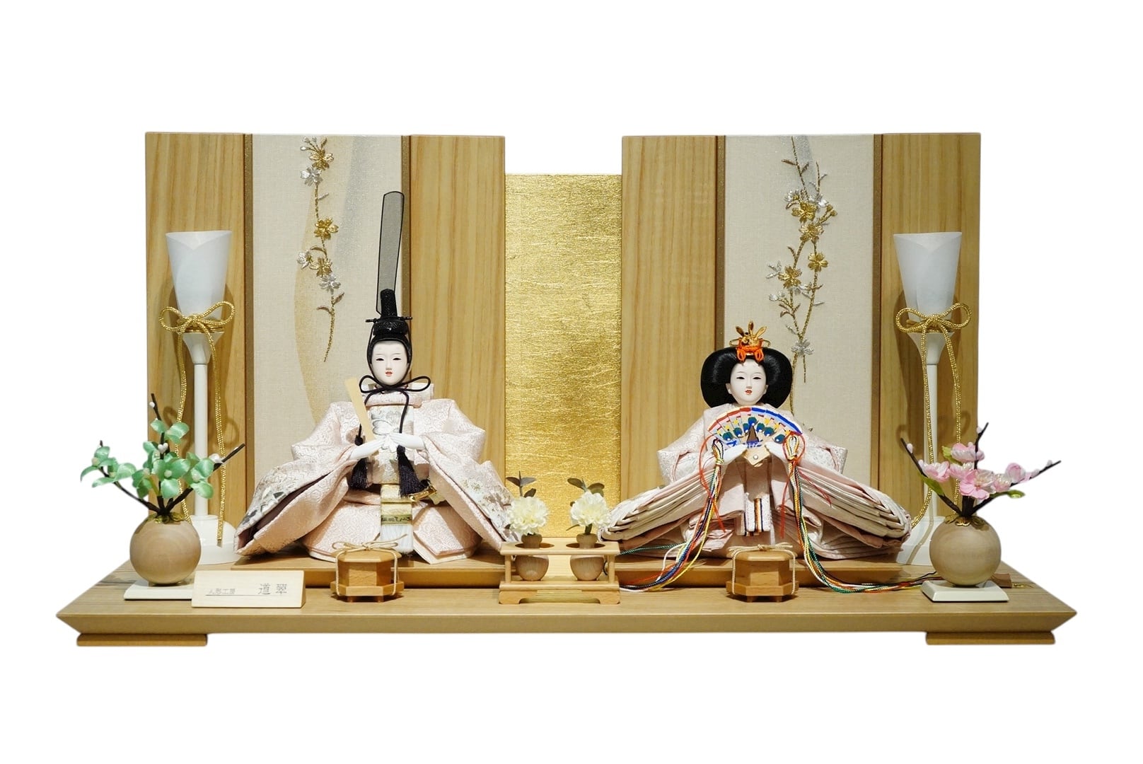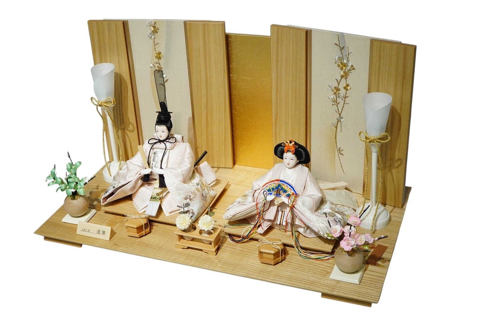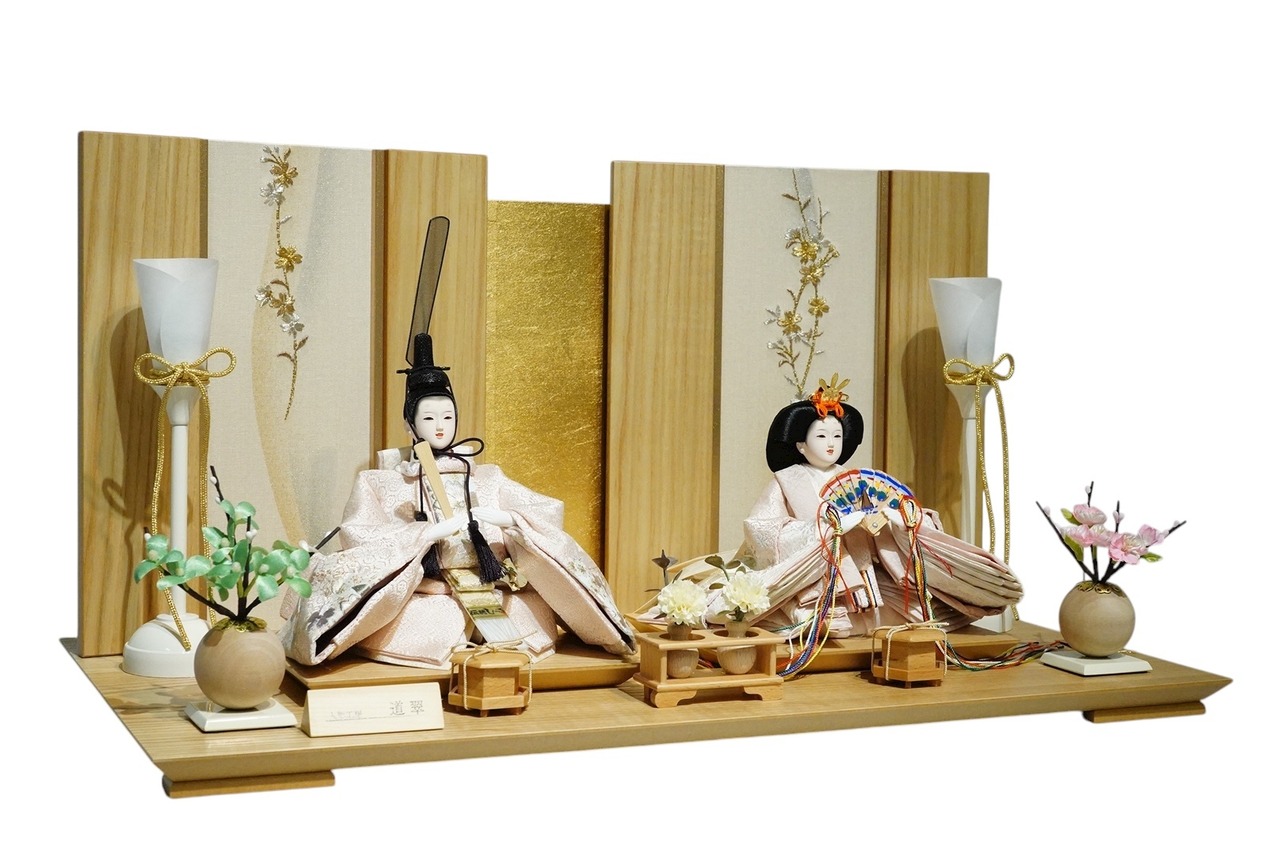 やわらかな木目と上品な彩りが調和した、気品ある親王飾り。