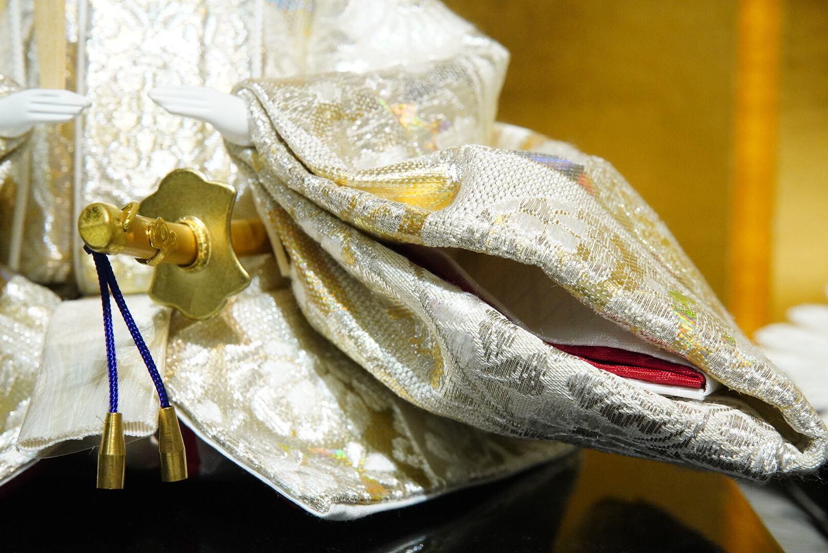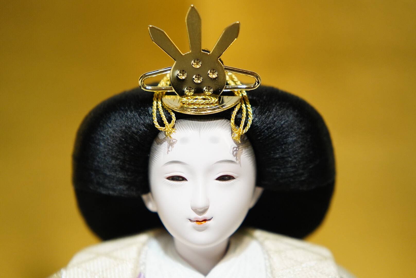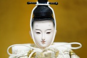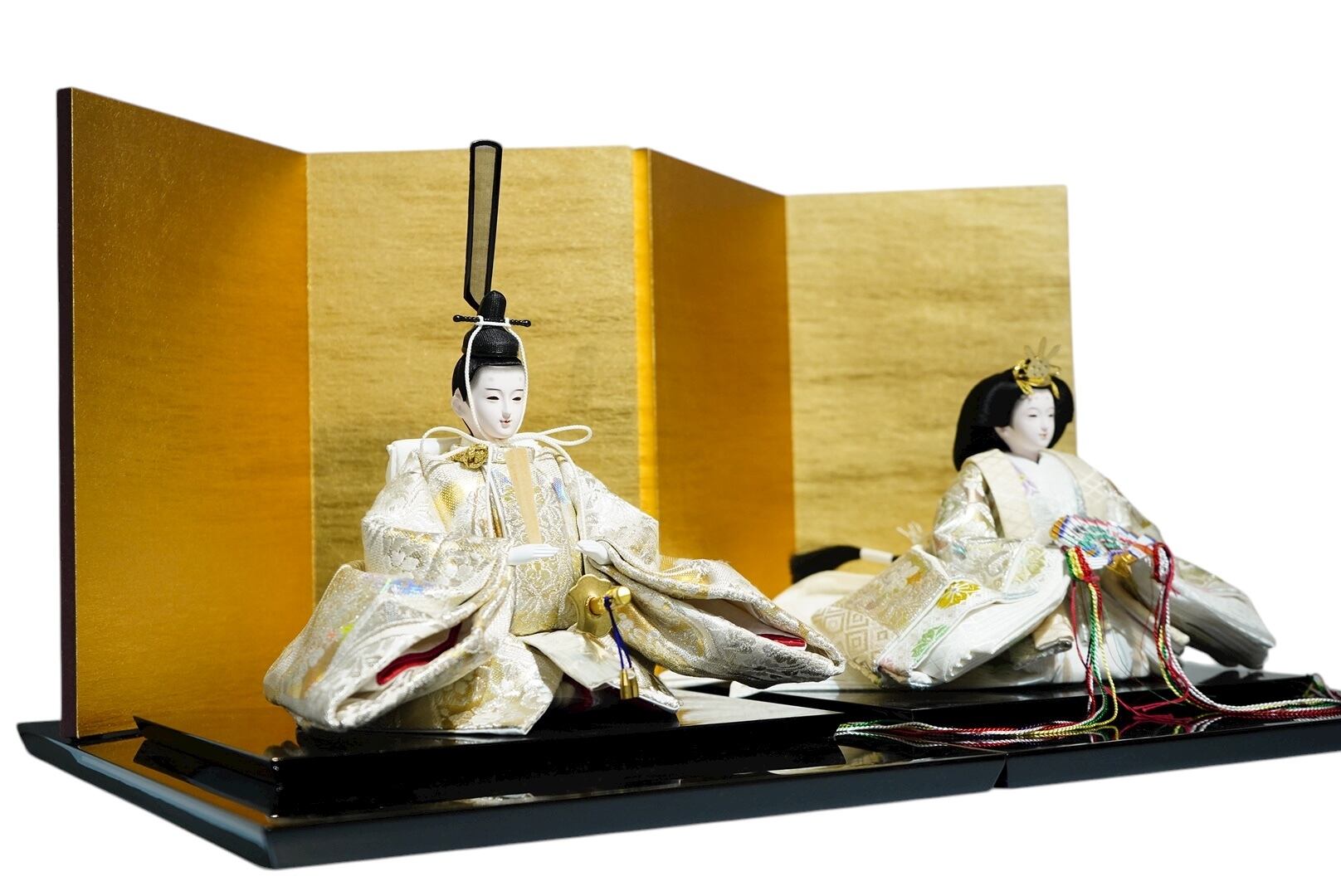 気品と格調を兼ね備えた、白金色の衣装が美しい親王飾り。